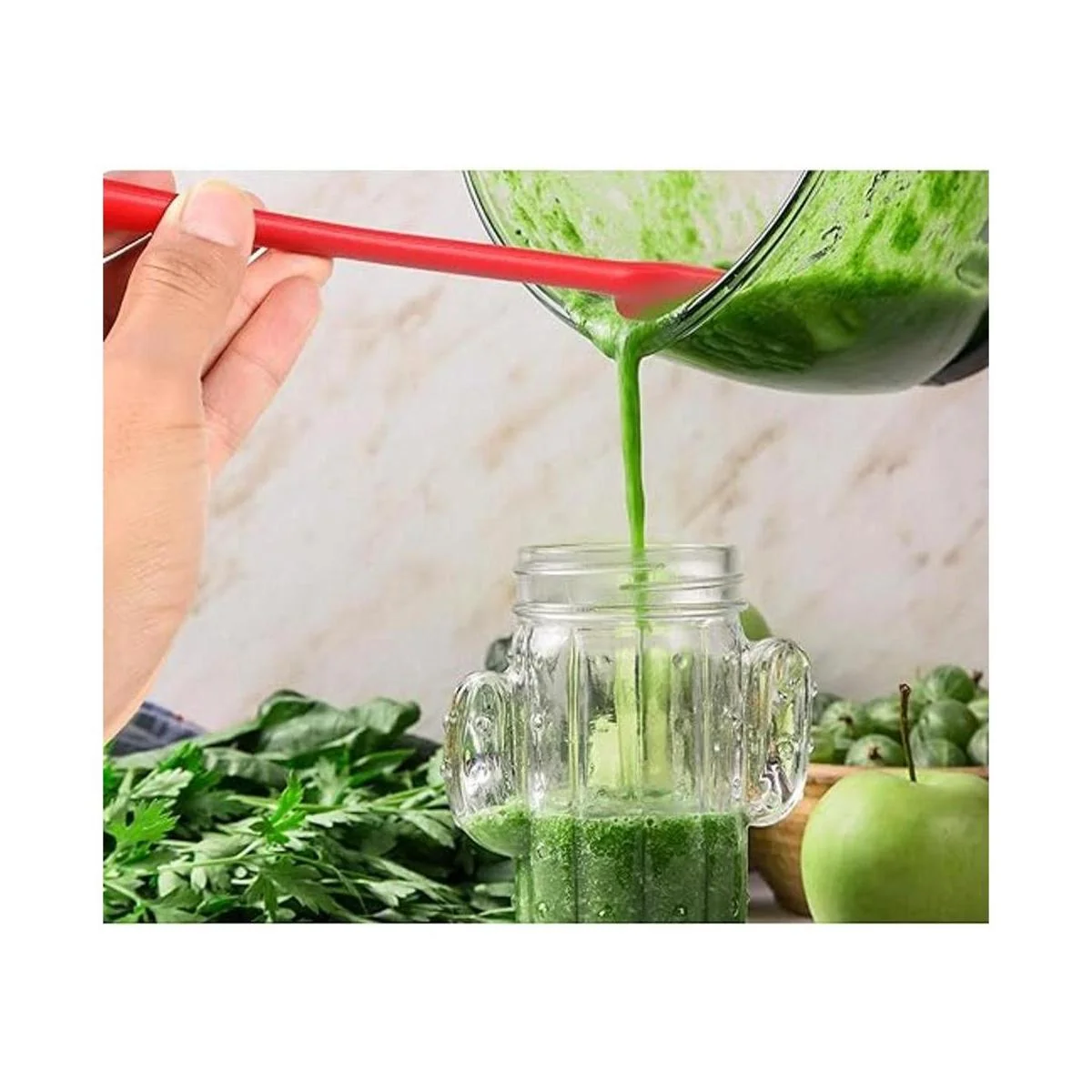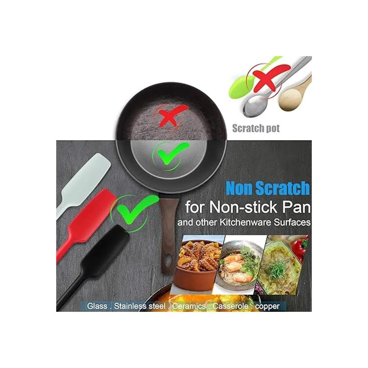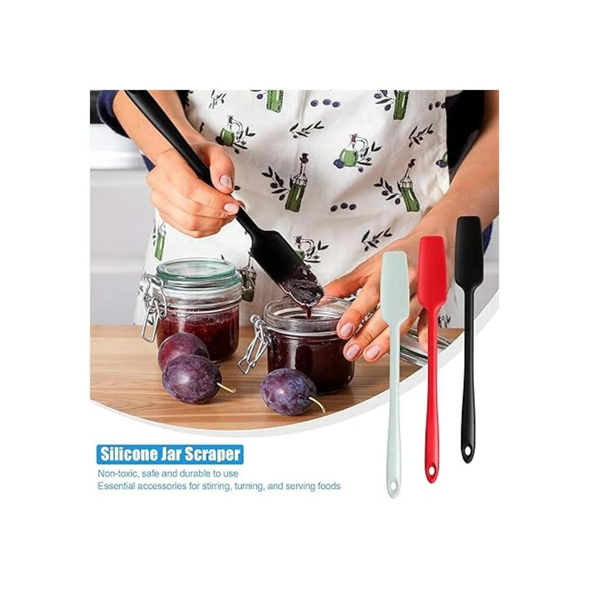 Diseño de mango largo: las espátulas de silicona de cocina están diseñadas con asas largas que les permiten llegar a la parte inferior de los tarros y llegar a diferentes esquinas fácilmente, lo que puede ayudarte a obtener lo que necesitas cómodamente sin ensuciarte las manos, y dejar tus tarros vacíos sin desperdiciar las mermeladas, los útiles raspadores traen un montón de comodidades a tu vida