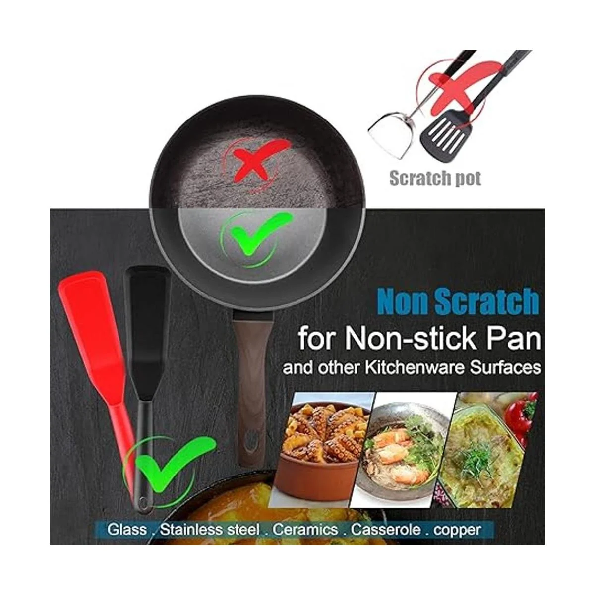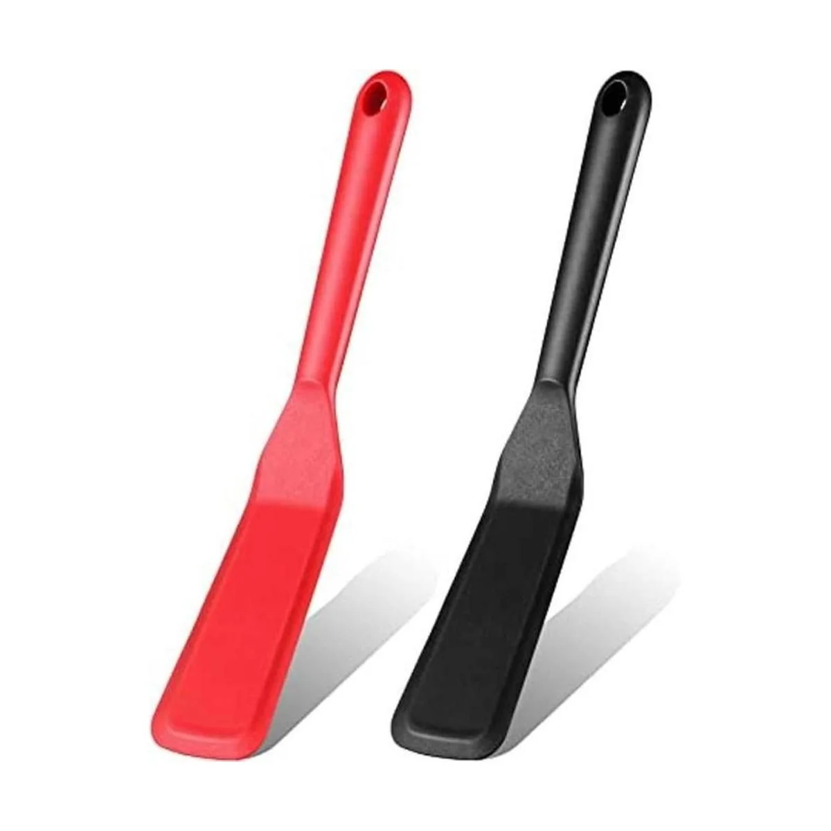 Espátula fina de silicona para tortilla, espátula larga de crepé resistente al calor, espátula de cocina antiadherente para panqueques para cocinar huevos, hamburguesas, pizza, panqueques, filetes, tortillas, crepes (2, rojo, negro)