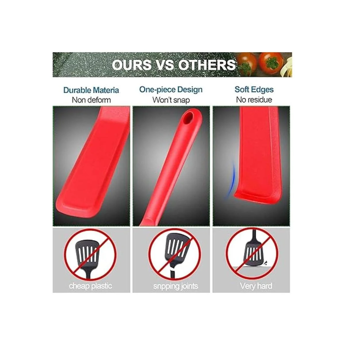 Diseño práctico: estas espátulas de cocina antiadherentes están diseñadas con bordes biselados y cuchillas estrechas que se deslizan bajo alimentos delicados fácilmente, y se combinan con colores clásicos, rojo, negro, que pueden combinar bien con varios estilos de decoración de cocina