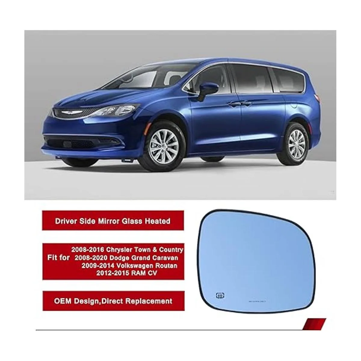 Espejo calefactado con vista lateral del pasajero de repuesto para Chrysler Town Country Dodge Grand Caravan RAM CV Volkswagen VW Routan Mirror Espejo lateral convexo de vidrio con placa trasera