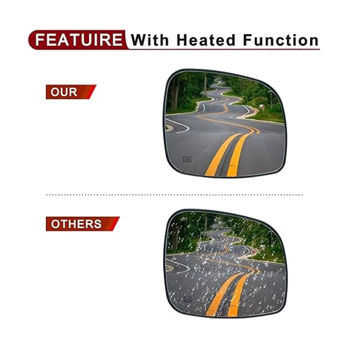 Fácil de instalar: diseño OEM, instalación directa y firme. Para colocar el espejo lateral todo el camino sin romperlo, puedes utilizar el ajuste de inclinación en la puerta del conductor para inclinar el mecanismo del espejo hasta abajo antes de instalarlo, luego utiliza un destornillador largo para sujetarlo contra él mientras se coloca el espejo. Los dos clips inferiores se deslizan y luego los dos superiores encajan en su lugar.