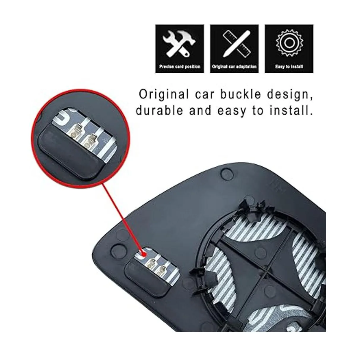Fácil de instalar: diseño OEM, instalación directa y firme. Para colocar el espejo todo el camino sin romperlo, puedes utilizar el ajuste de inclinación en la puerta del conductor para inclinar el mecanismo del espejo hasta abajo antes de instalarlo, luego utiliza un destornillador largo para sujetarlo contra él mientras se coloca el espejo. Los dos clips inferiores se deslizan y luego los dos superiores encajan en su lugar. No necesita adherencia.