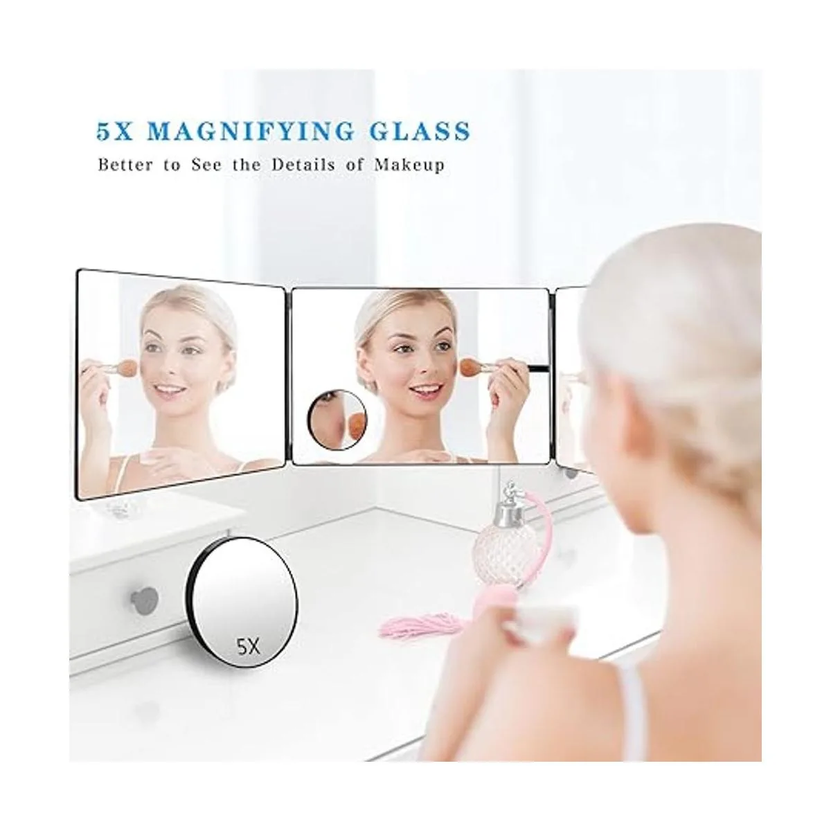 Espejo de 3 vías para auto corte de cabello, espejo de tocador, accesorios de peluquería de 360, espejo de maquillaje triple para ver la parte posterior de la cabeza
