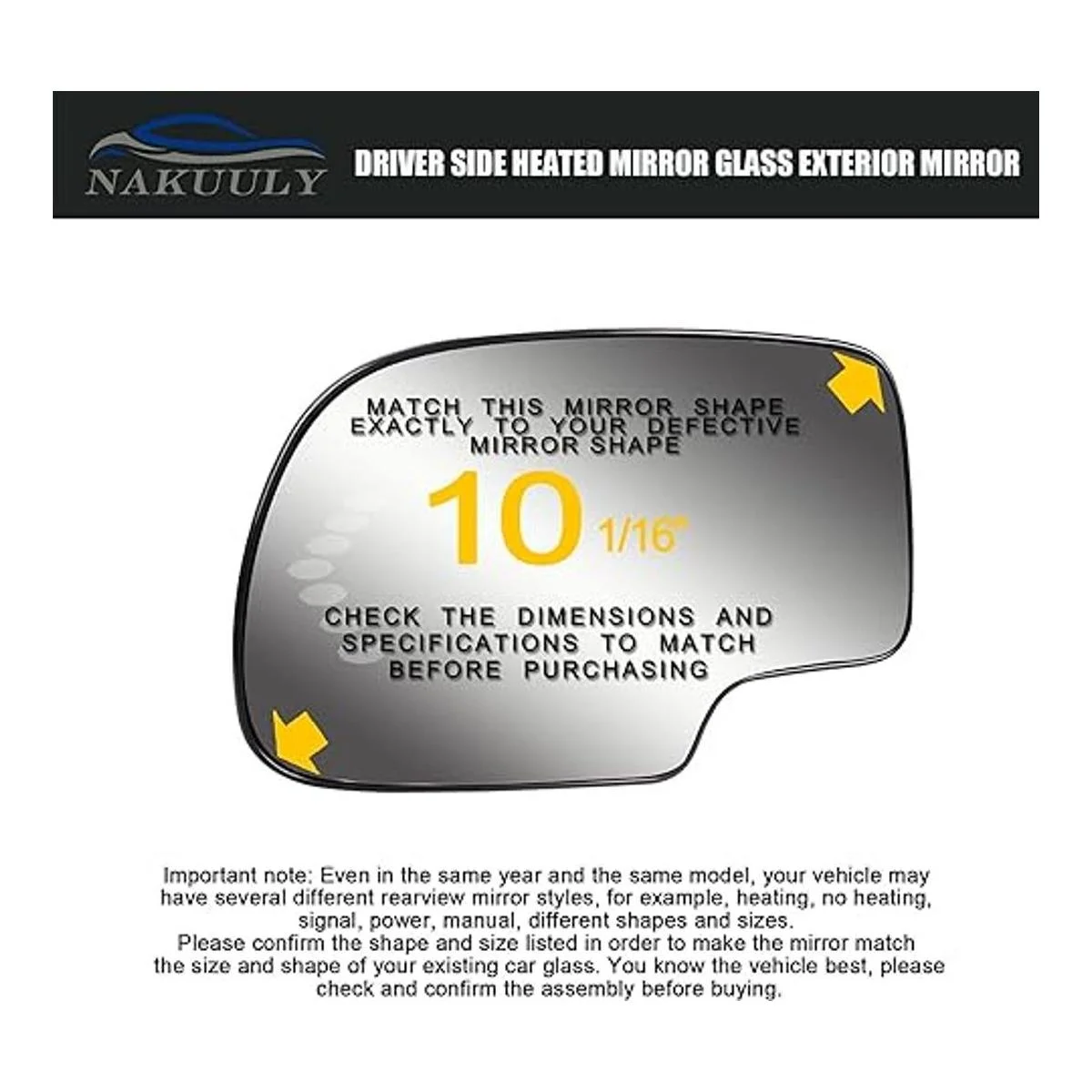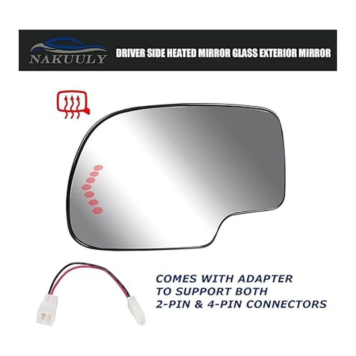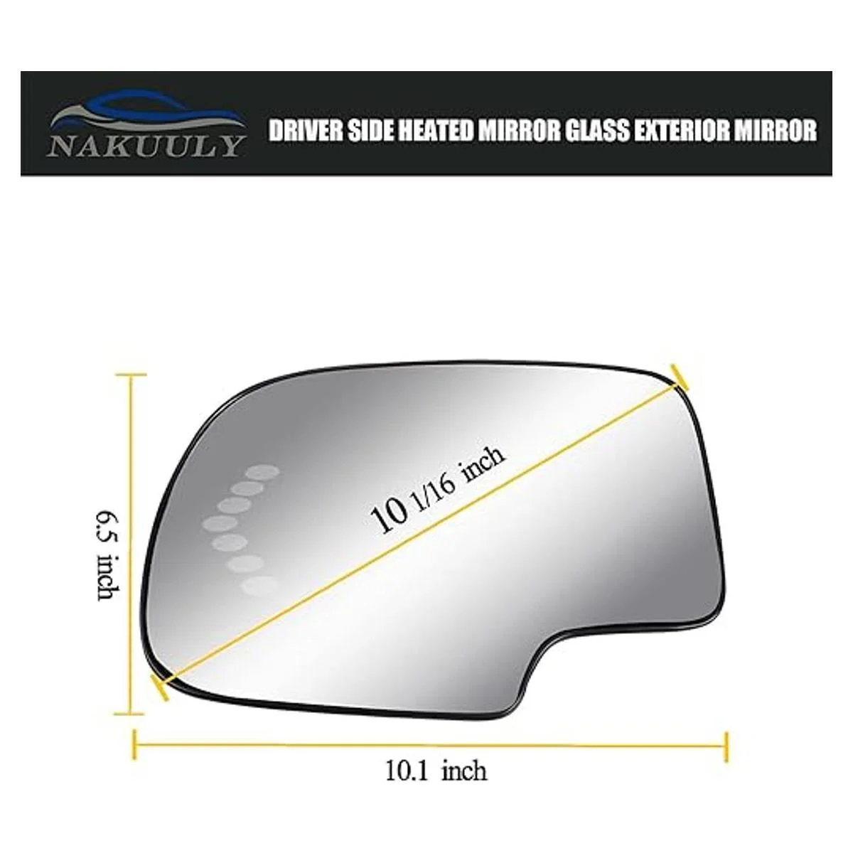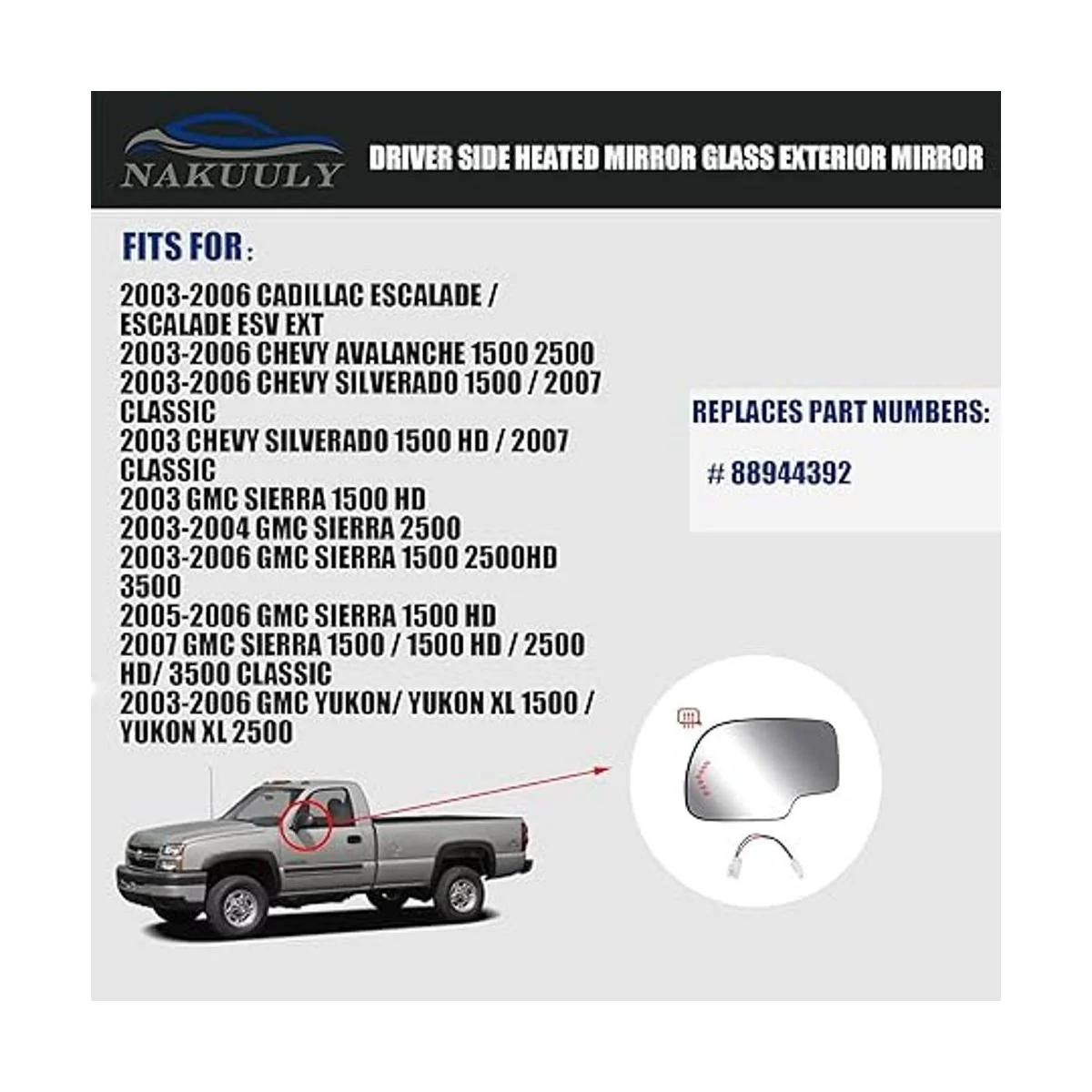 Espejo exterior de vidrio con calefacción lateral del conductor compatible con Cadillac Escalade, GMC Sierra, Silverado, Sierra Classic, Yukon, Suburban, Flecha Signal, Tahoe, reemplazo número de pieza 88944391