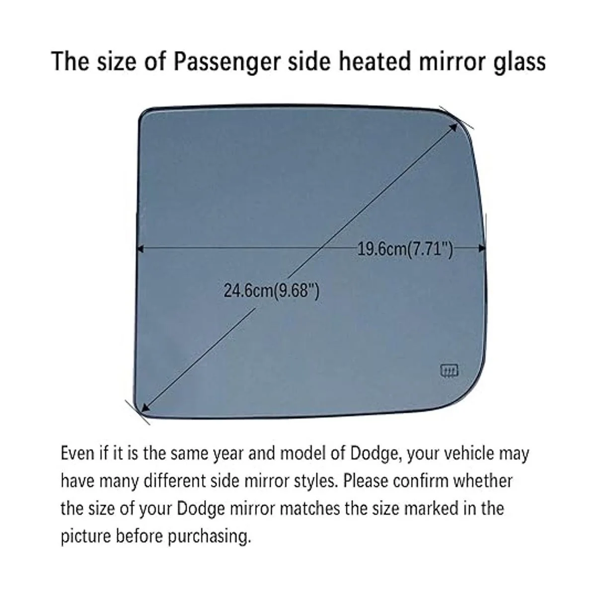 Espejo plano de remolque de cristal para el lado derecho del pasajero compatible con Dodge Ram 1500 2500 3500 2009 2010 2011 2012 2013 2014 2015 2016 2018 2019 2020