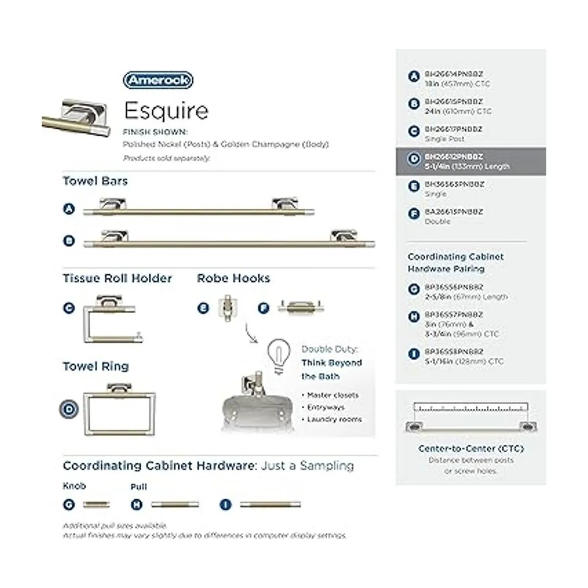 Esquire Anillo de toalla contemporáneo de níquel pulidochampán dorado de 514 pulgadas 5.236 in de longitud