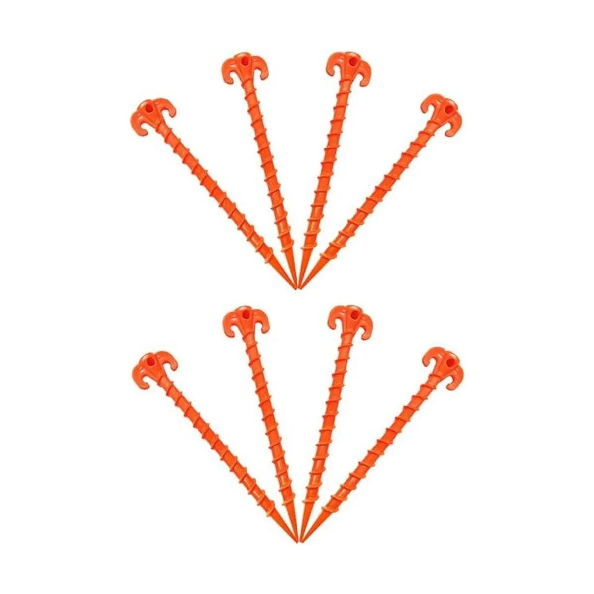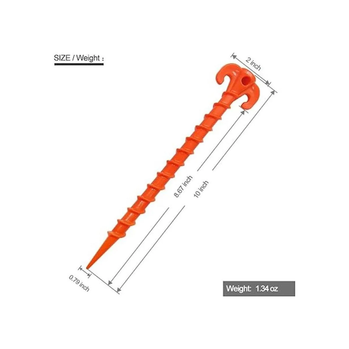 Estacas para tienda de campaña de playa, anclajes para toldo con forma de tornillo resistente, 10 pulgadas, paquete de 8 unidades, color naranja