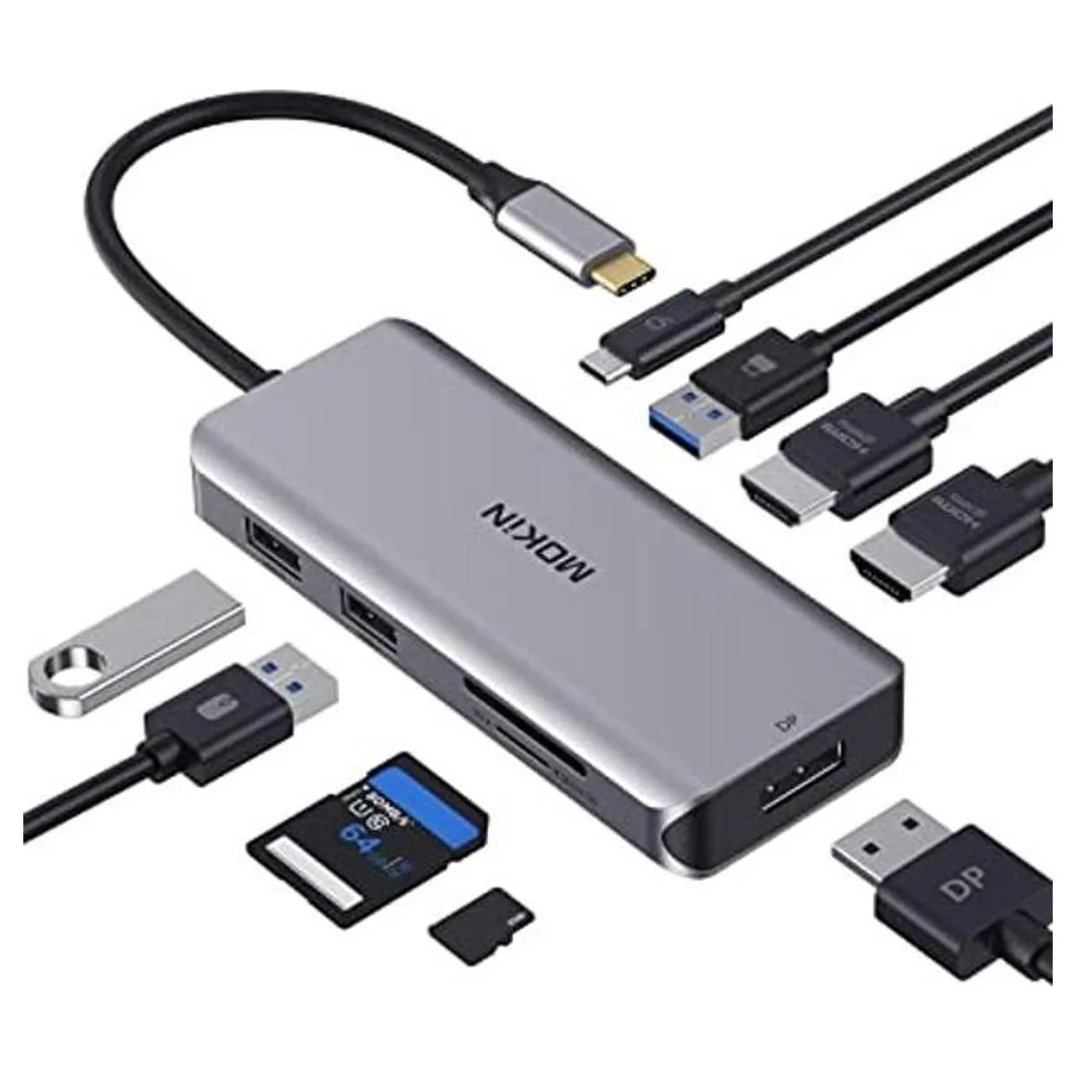 Concentrador USBC 9 en 1: toda la expansión desde un solo puerto USBC, obtendrás 2 salidas HDMI, 1 salida DP, resolución de 4K a 60 Hz y video vívido, 1 puerto de carga tipo C PD 3.0 proporciona una velocidad de carga superrápida de 100 W, 1 puerto USB 3.0 y 2 puertos USB 2.0 te ayudan a transferir los datos con supervelocidad de 5 Gbps y conectar. los dispositivos inalámbricos; SD El lector de tarjetas TF de 5 Gbps te hace obtener mucho más.
