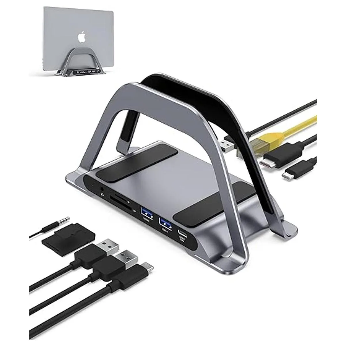 Estación de acoplamiento para MacBook, estación de acoplamiento USB C con soporte vertical compatible con MacBook Pro y Air, con HDMI 4K, 3 USB, SDTF, PD3.0, Ethernet RJ45, audio de 0.138 in, para laptops HPDellLenovo