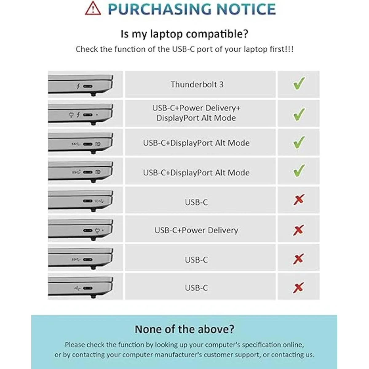 Amplia compatibilidad: la estación de acoplamiento USB C es perfecta para trabajar con cualquier dispositivo tipo C que admita el modo Alt de pantalla y la entrega de energía. Es necesario utilizar el controlador con los puertos de pantalla de la estación de acoplamiento de pantalla dual QIYO. Envíe un correo electrónico al servicio QIYO o descargue e instale el controlador más reciente del sitio web oficial de DisplayLink.