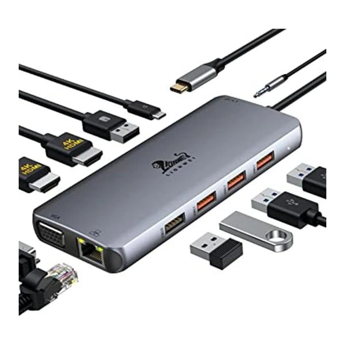 Base USB C 11 en 1: esta estación de acoplamiento de doble monitor contiene 2 puertos HDMI 4K, 3 puertos USB 3.1 de 10 G, 2 USB 2.0, carga USB C PD, VGA, puerto Gigabit Ethernet RJ45 de 3,280.8 ft y puerto de audio/micrófono 2 en 1; todos los puertos de esta estación de acoplamiento se pueden usar simultáneamente, te permite conectar fácilmente el teclado, mouse. se, controlador USB, externo Disco a tu laptop; esta estación de acoplamiento USB C LIONWEI Dual HDMI satisface eficazmente todas tus necesidades de trabajo y entretenimiento.
