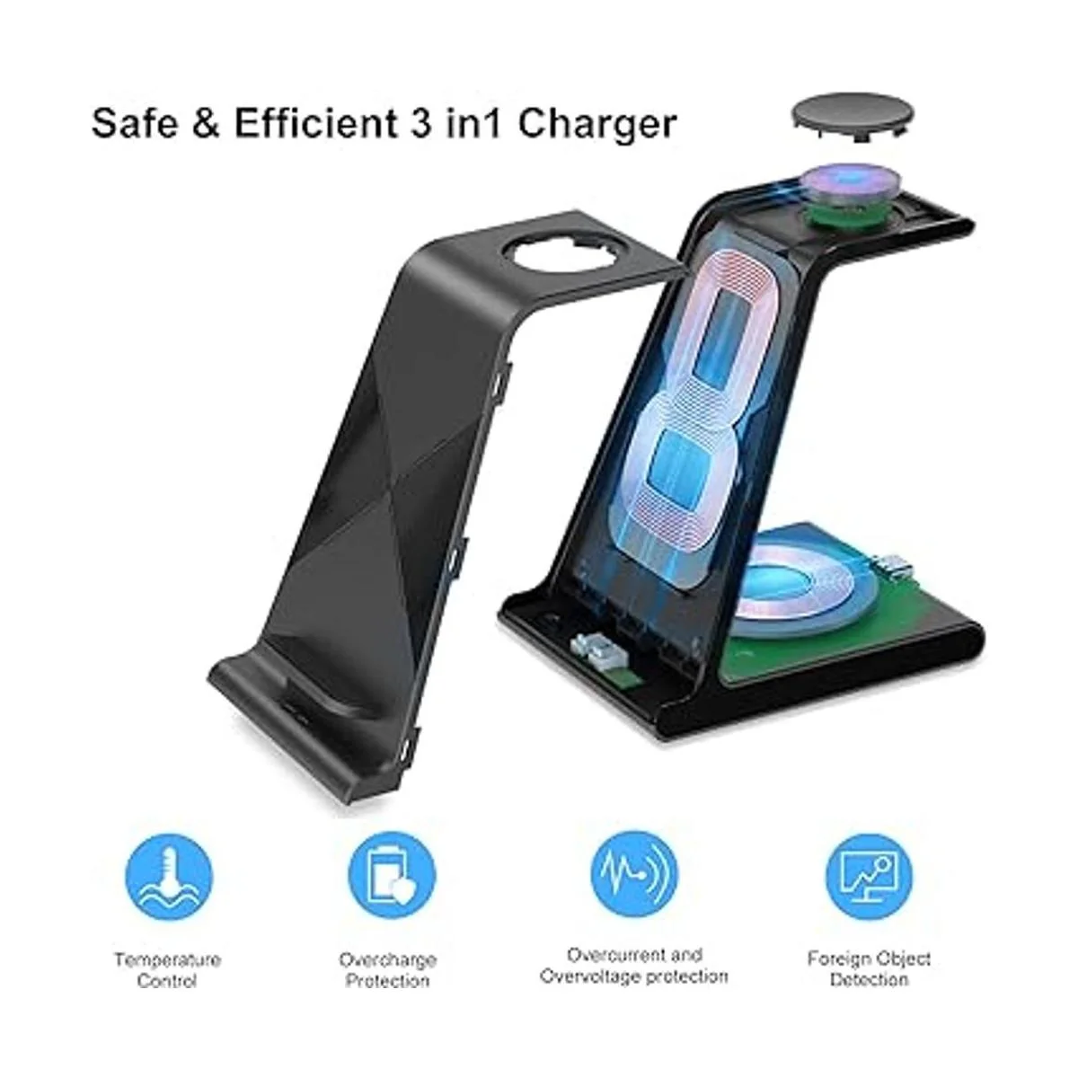 Elección ideal para dispositivos inteligentes: la base de carga inalámbrica 3 en 1 es una alternativa perfecta para cargadores separados, ahorrando más espacio y un par de enchufes en comparación con los cargadores tradicionales. El trío de cargador inalámbrico es un maravilloso regalo para tu familia y amigos que poseen teléfonos, relojes y auriculares. Es el regalo perfecto para el día de Año Nuevo. Si tienes alguna pregunta, siempre puedes ponerte en contacto con nosotros por correo electrónico