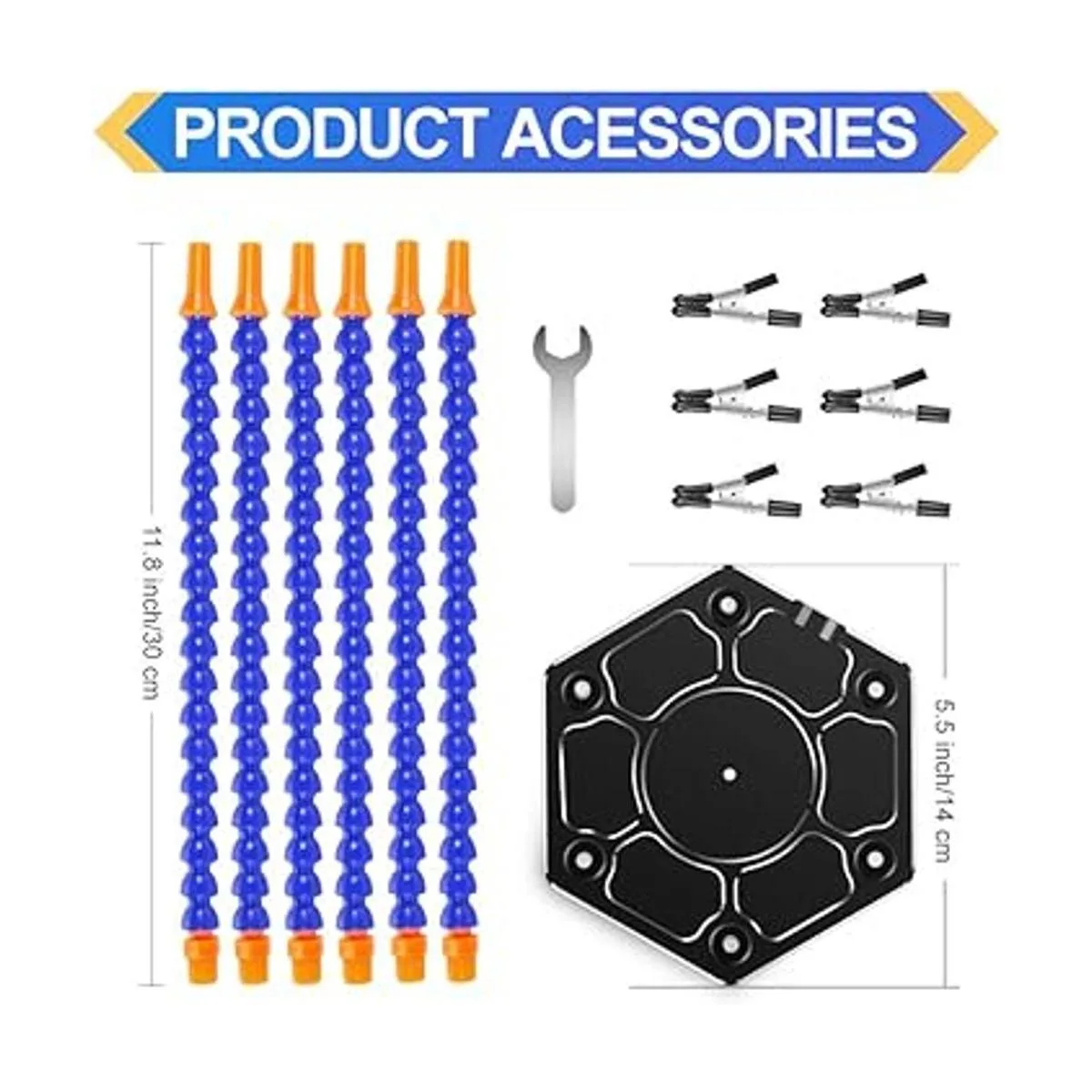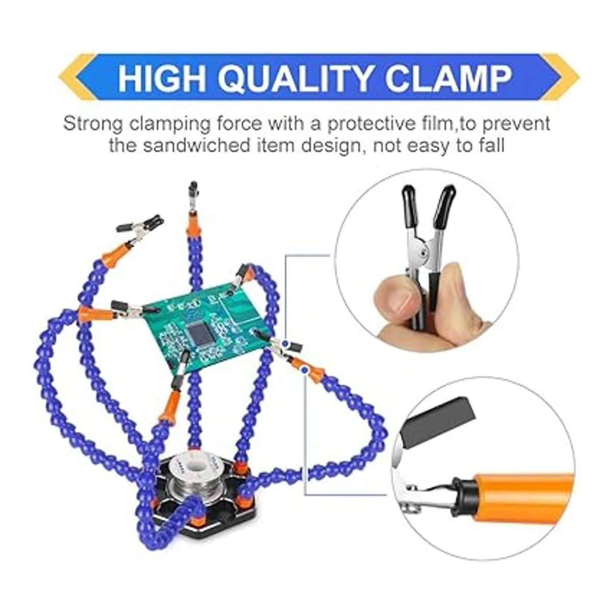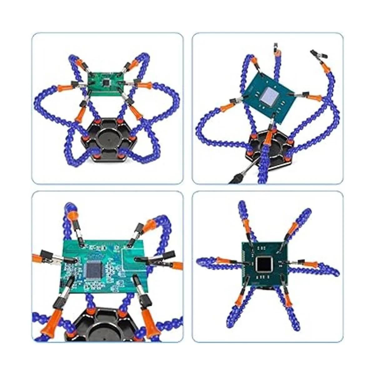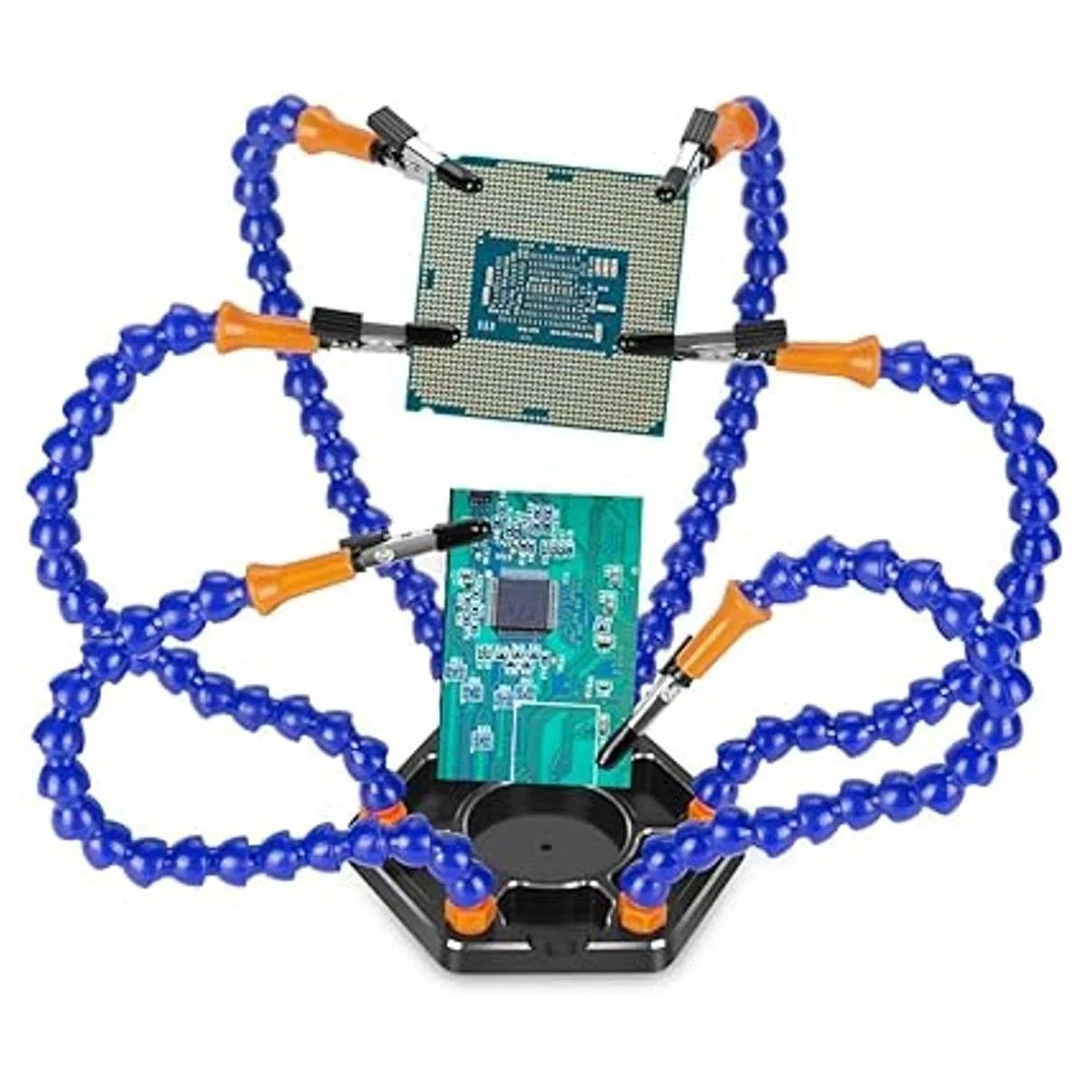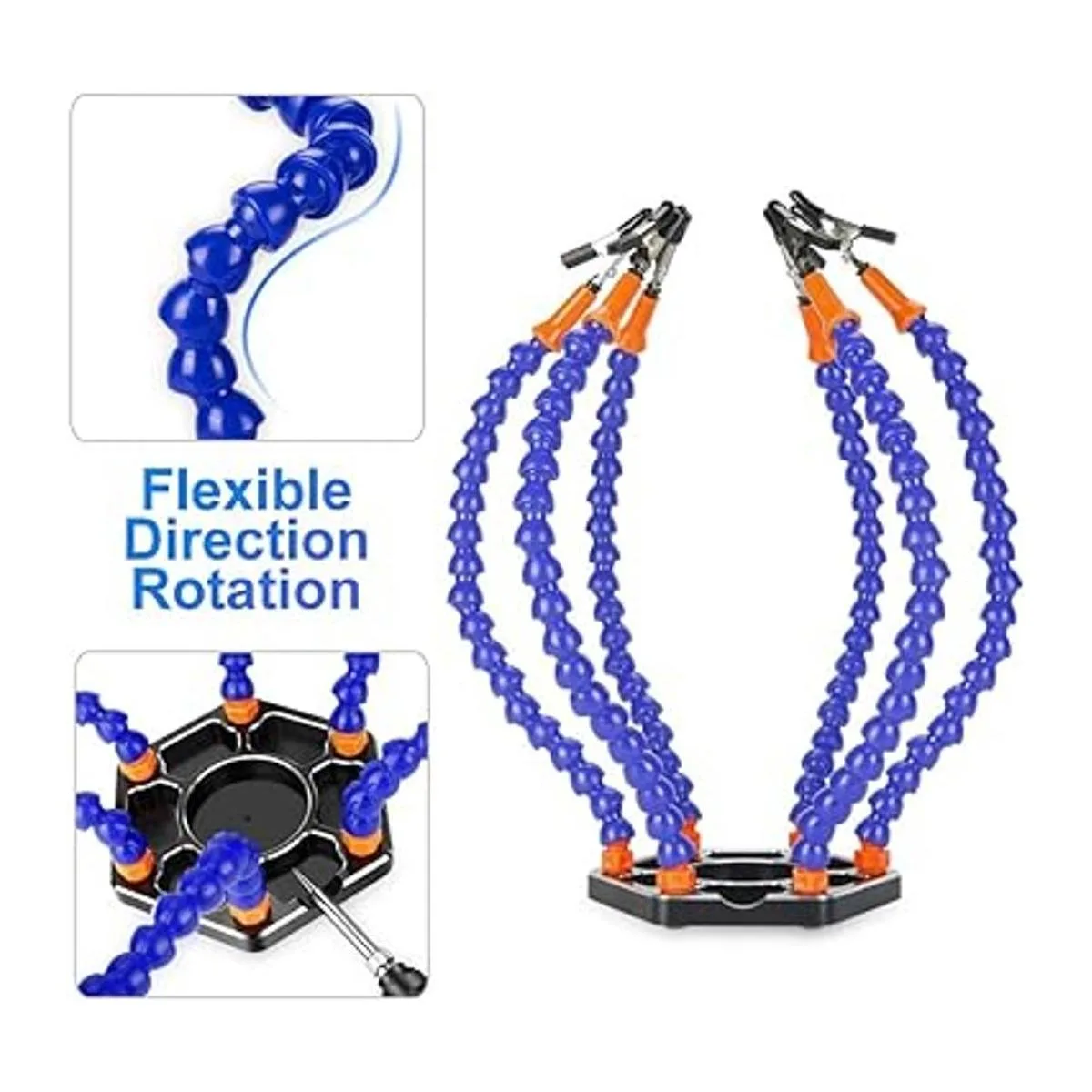 6 brazos flexibles: con 6 cuellos de cisne flexibles ajustables que ayudan a las manos y las abrazaderas de punta extraíbles, son fáciles de colocar donde quieras colocarlos y no se rompen fácilmente. Elimina la frustración de las manos tradicionales.