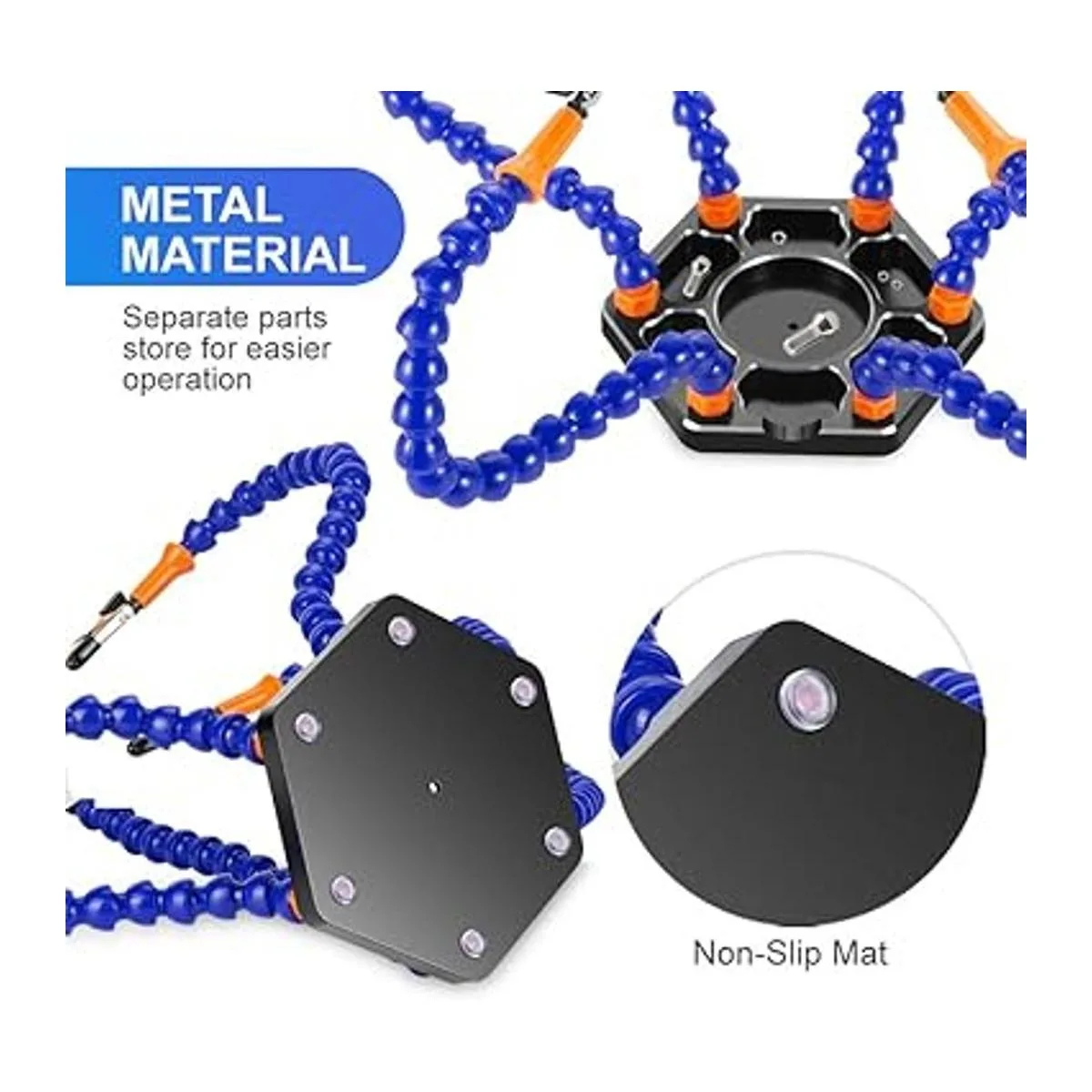 Estación de soldadura con seis brazos flexibles, base de metal, herramienta de soldadura 6 auxiliares de soldadura Base de aluminio para soldar, ensamblar, reparar, modelar, pasatiempos, manualidades