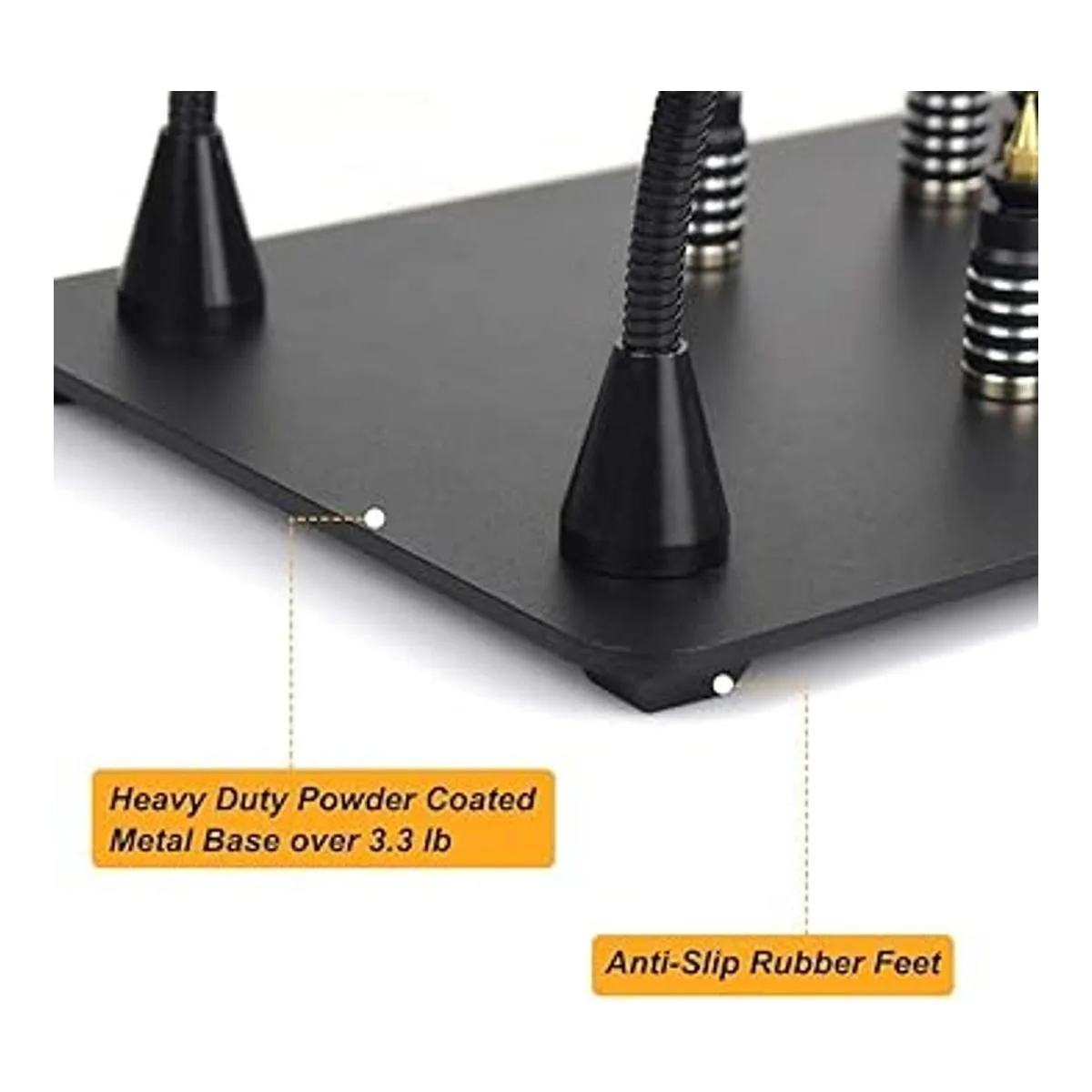 Base de metal con recubrimiento en polvo de alta resistencia: base de acero con recubrimiento en polvo de 11.4 x 7.1 pulgadas, más de 3.3 libras, y extremadamente resistente para garantizar que tu estación de trabajo no se vuelque ni se mueva ni se mueva. Los pies de goma de la base garantizan estabilidad y protegen tu encimera de rozaduras y arañazos.