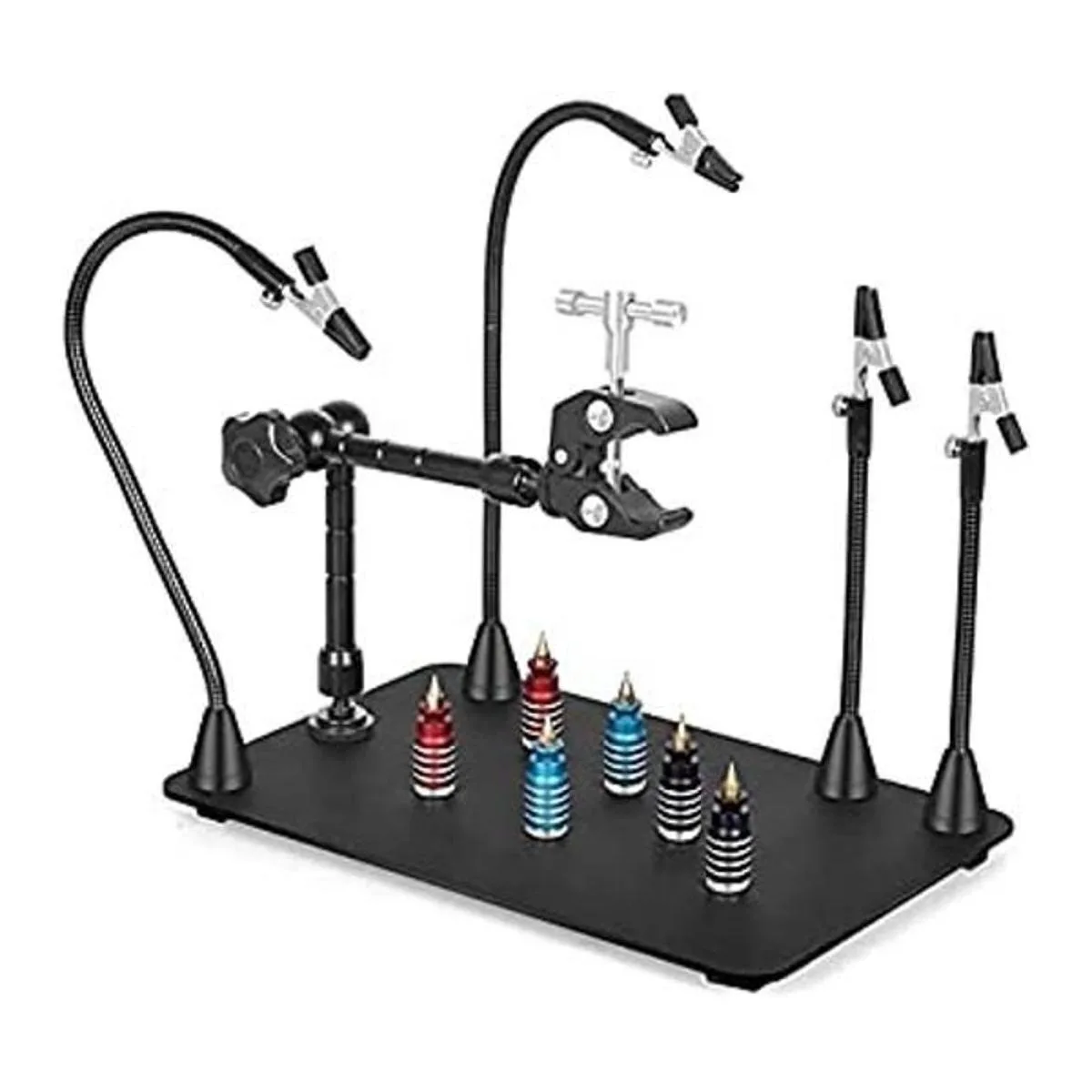 Estación de trabajo de soldadura magnética de tercera mano | Placa base extra grande y resistente | Brazos flexibles | Soporte de pistola de aire caliente 360 (ayuda a mano con mano mágica)