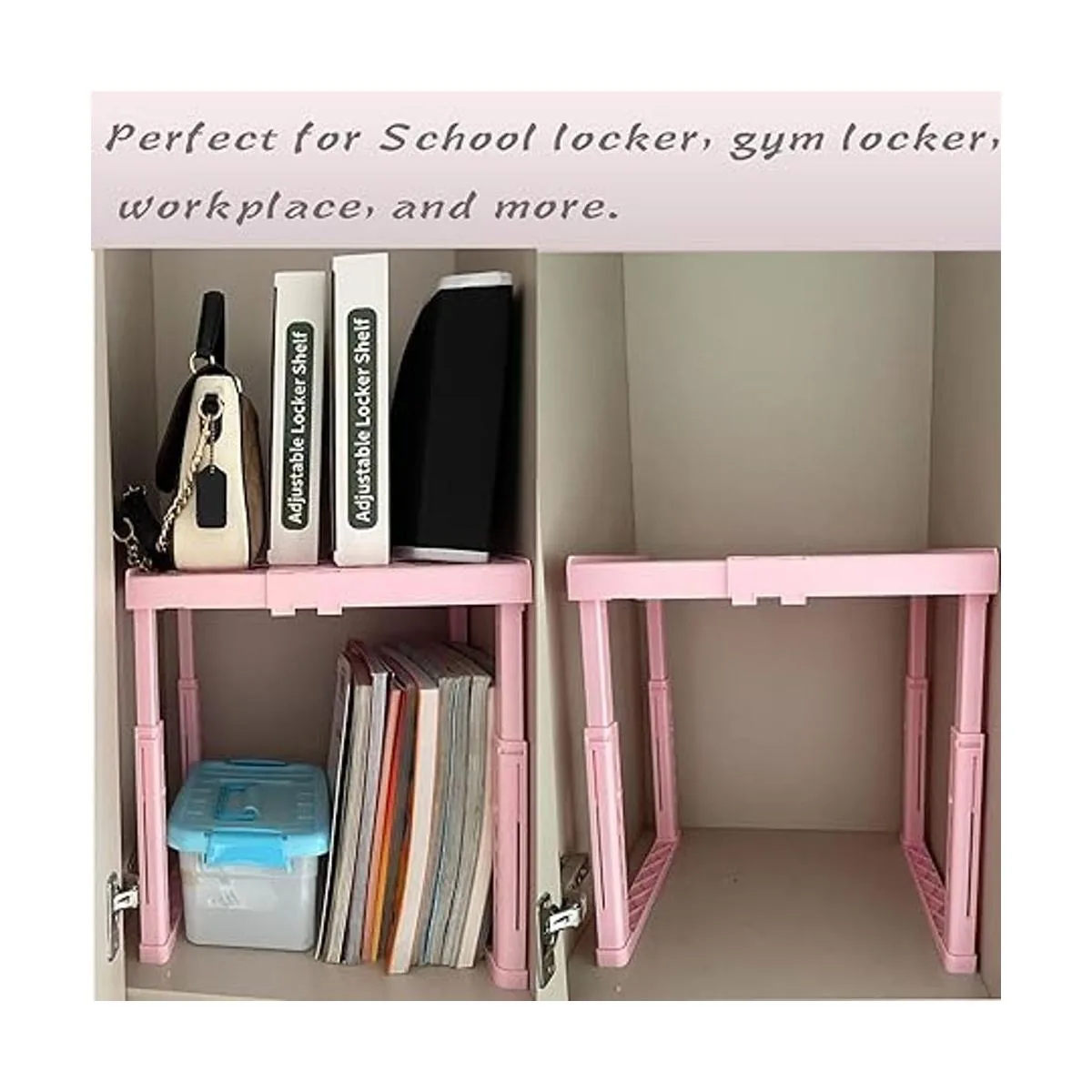 Estante ajustable para casillero de altura y ancho rosa, estante organizador ajustable para casillero escolar, herramientas apilables para casilleros de gimnasio, oficina, artículos esenciales para el regreso a clases