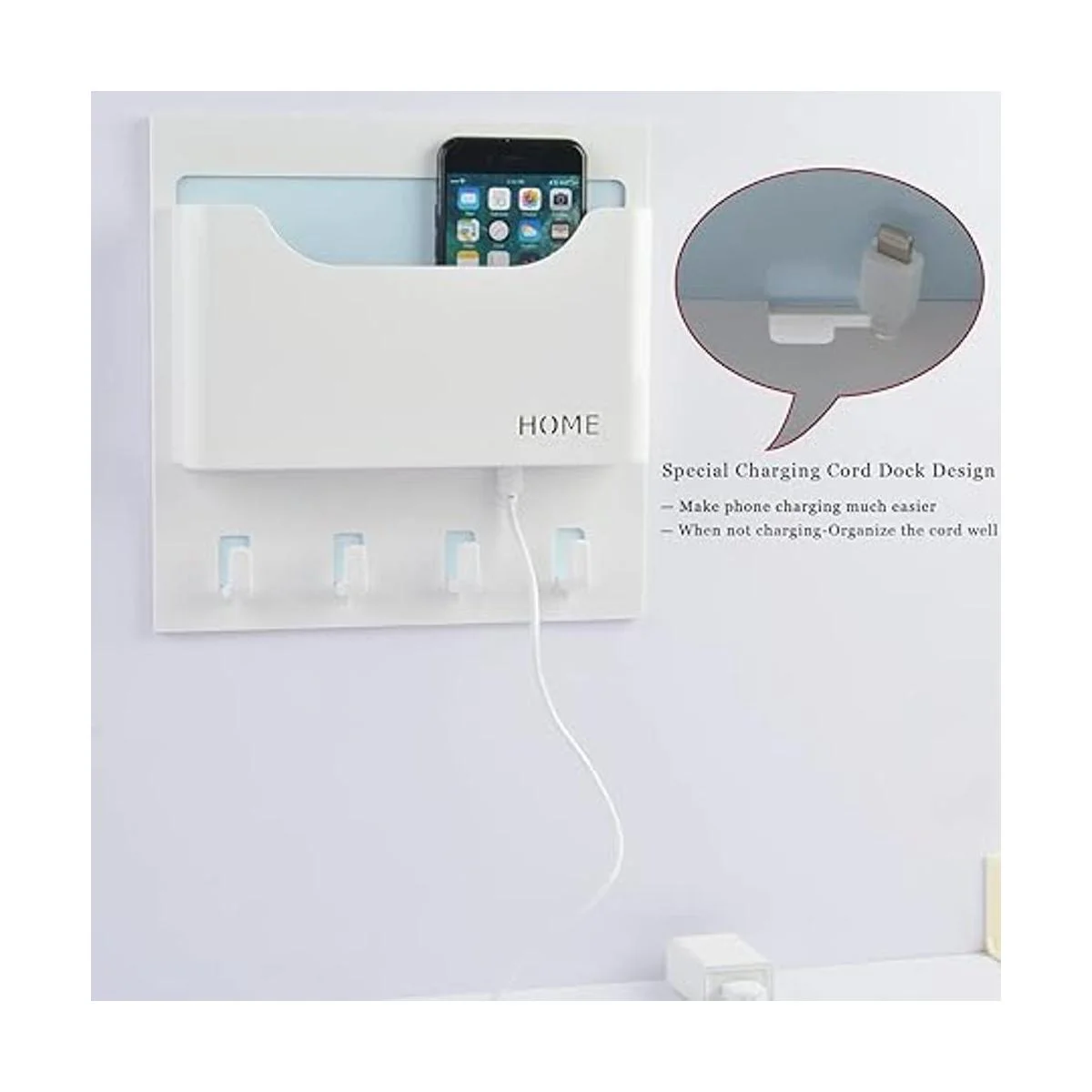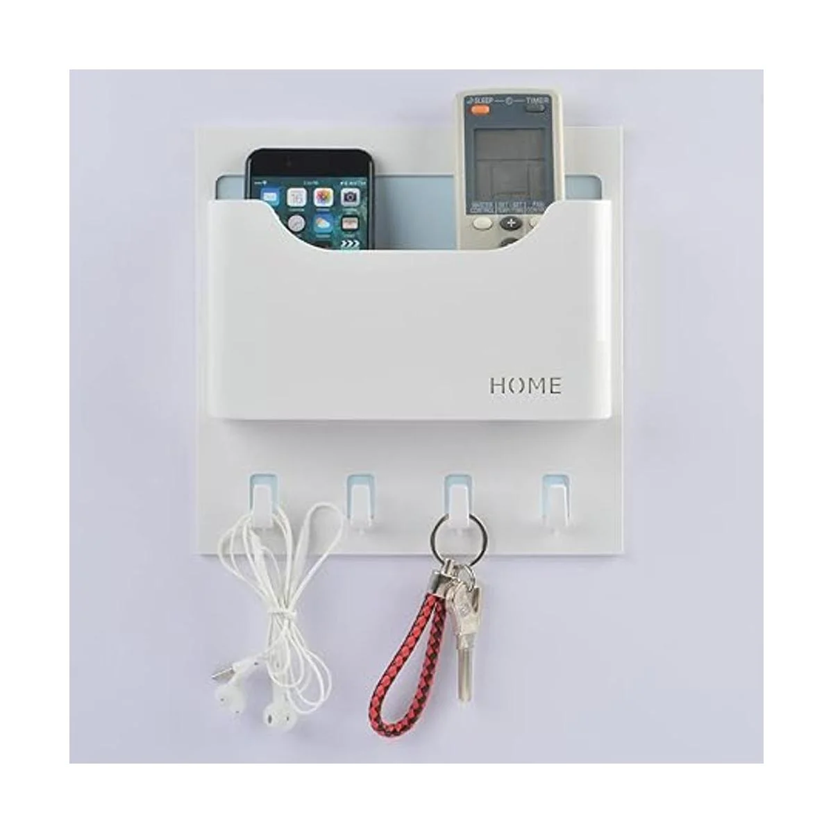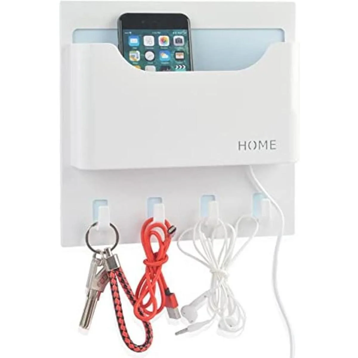 Fácil de pegar en la pared en la mesita de noche o baño en casa, dormitorio de estudiantes/dormitorio, incluso oficina en el lado del escritorio; es como caja semicircular montada en la pared, caja izquierda conveniente para almacenar el teléfono celular, auriculares, gafas, control remoto, llaves, bolígrafo, lápiz, nota adhesiva; caja derecha para almacenar ramo de plástico, copas de vino, cerveza, latas, botellas de plástico, tazas individuales, etc. Un soporte para auriculares es especial para organizar auriculares. 2 ganchos para sostener llaves, auriculares, cuerda para la cabeza, etc. Satisface tus necesidades diarias.