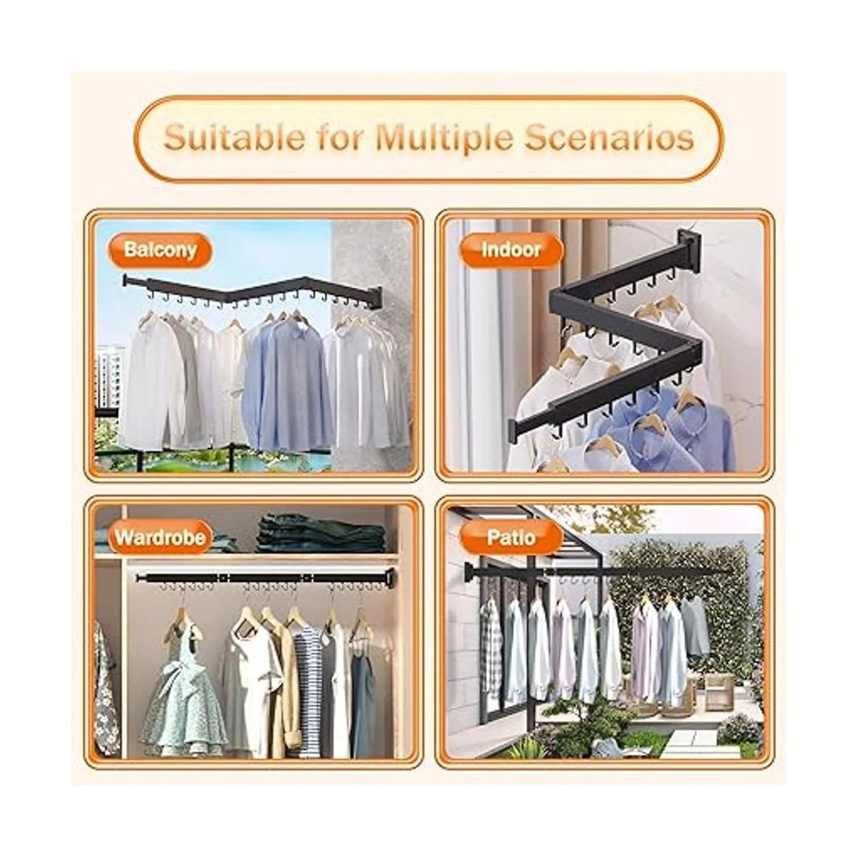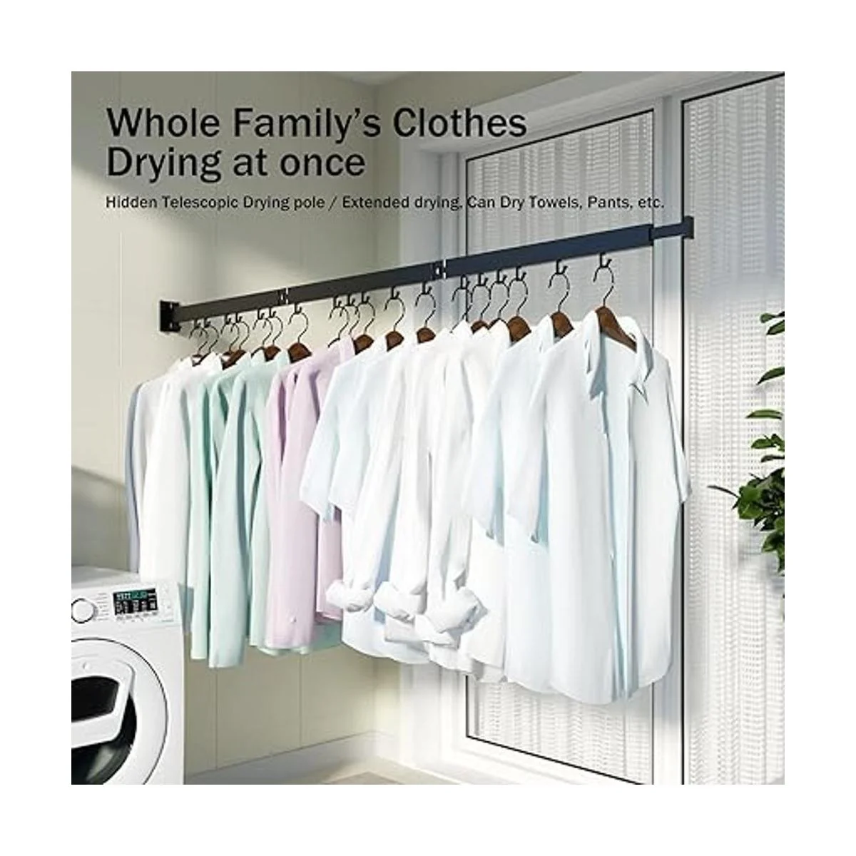 Aplicable a varios lugares interiores y exteriores: este estante retráctil se puede utilizar en interiores y exteriores, en pasillos, dormitorios, lavanderías, patio, balcón, etc. Se puede instalar donde quieras, y cuando lo instales junto a la ventana y se expande para extenderse fuera de la ventana, más ropa se puede exponer al sol.