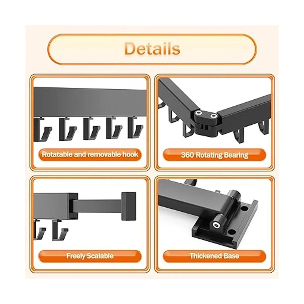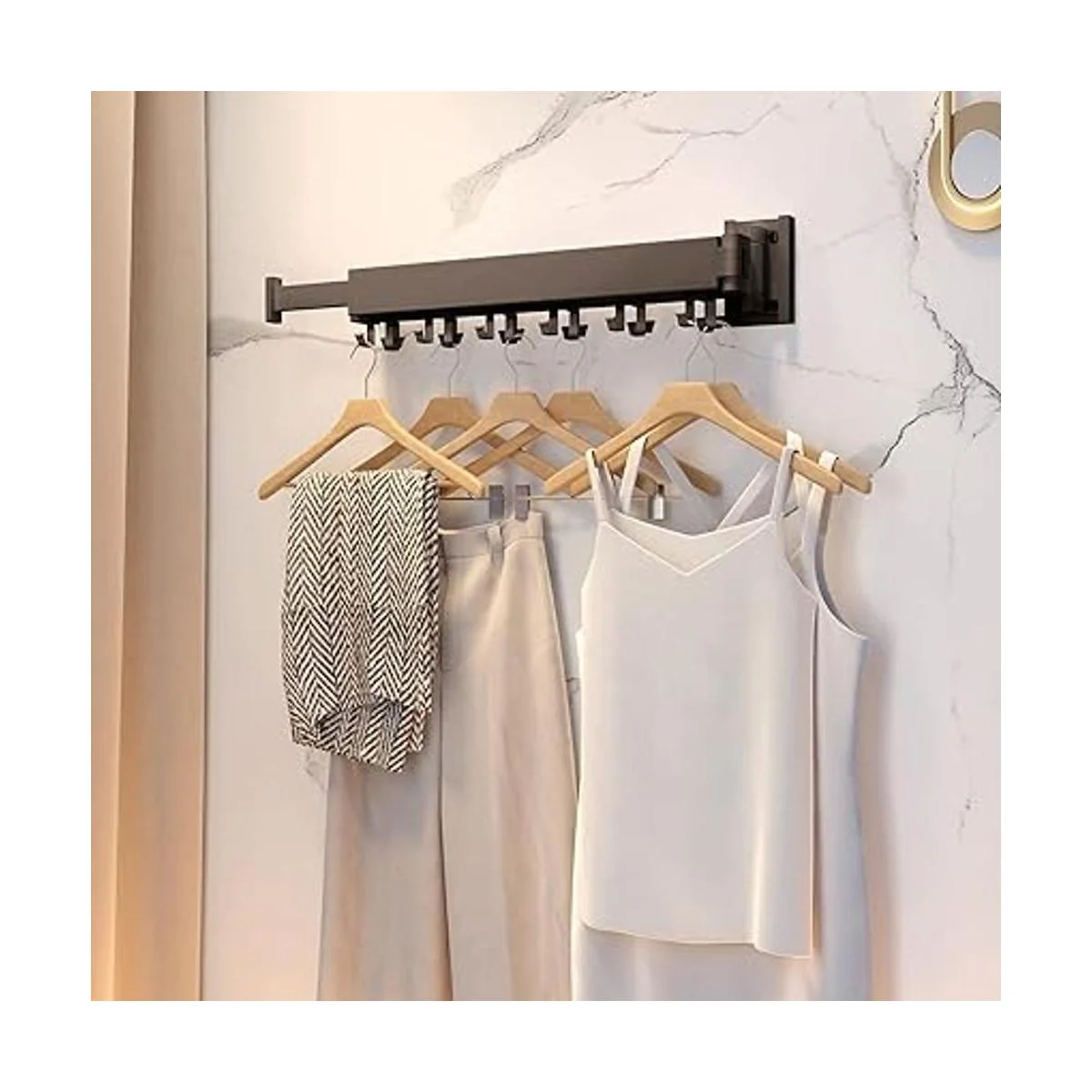 Ahorro de espacio: este tendedero de pared te permite hacer pleno uso de tu espacio, desplegarlo cuando lo usas y doblarlo contra la pared cuando no esté en uso. No ocupa espacio en absoluto. Es muy flexible y cómodo, especialmente en interiores, este perchero será tu primera opción.