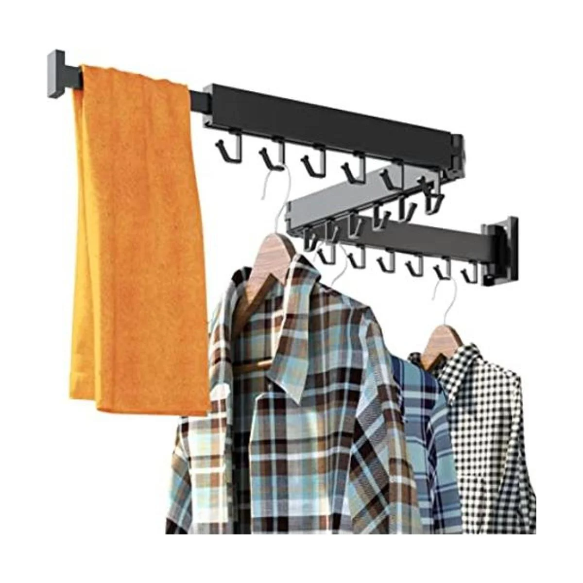 Estante de secado de ropa, estante de secado de lavandería, estante de ropa montado en la pared, estante de ropa para colgar ropa, soporte de pared, plegable, retráctil, plegable, plegable, organización de cuarto de lavandería ganchos en forma de J