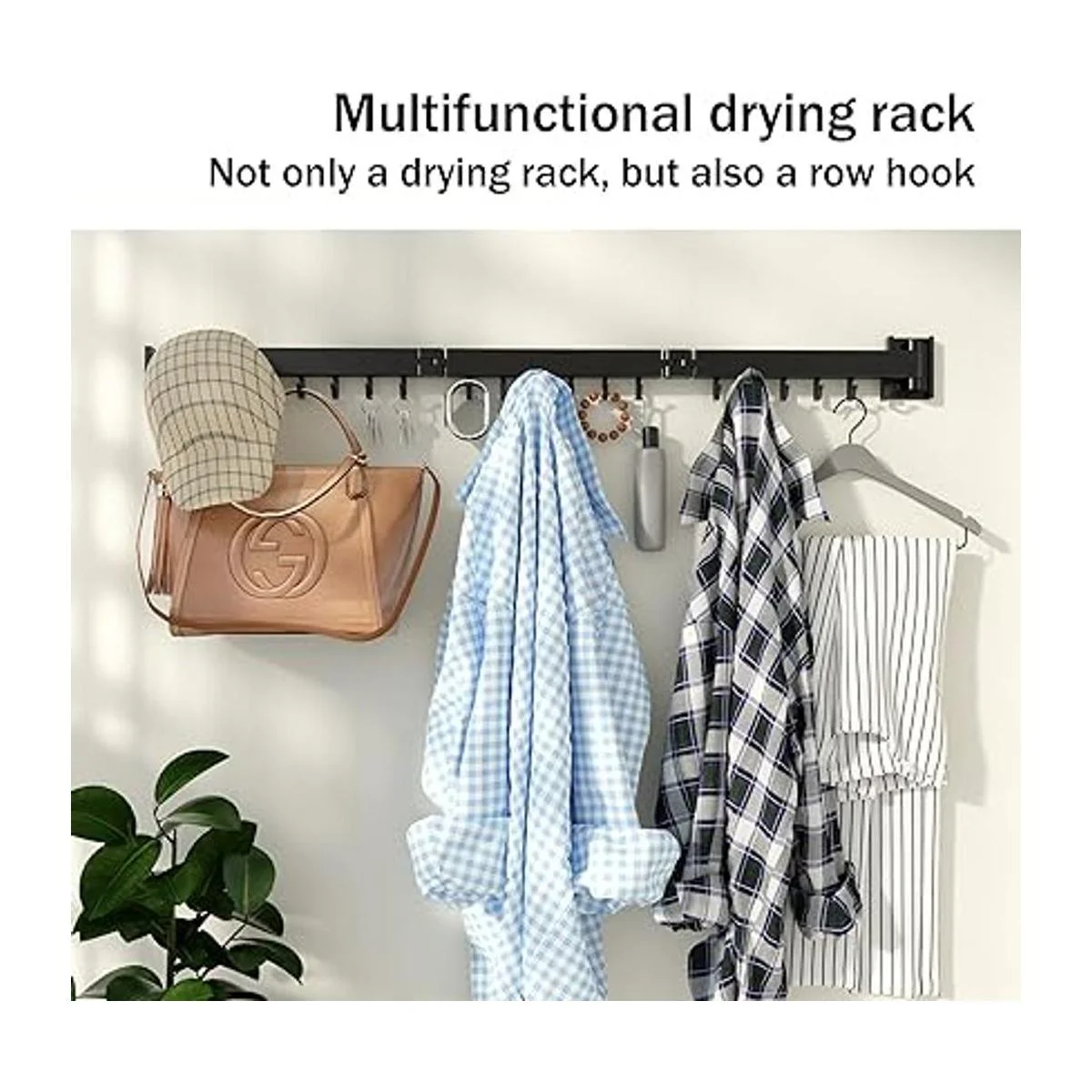 Puedes colgar objetos directamente sin un perchero: este soporte de pared para perchero tiene 18 ganchos. Puedes colgar ropa o cualquier objeto directamente sin una percha. Cuando lo despliegas contra la pared, puedes usarlo como un gancho normal para colgar ropa, sombreros, llaveros, bolsos, etc.