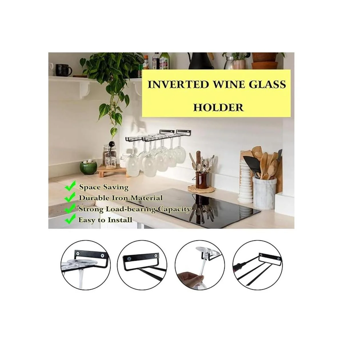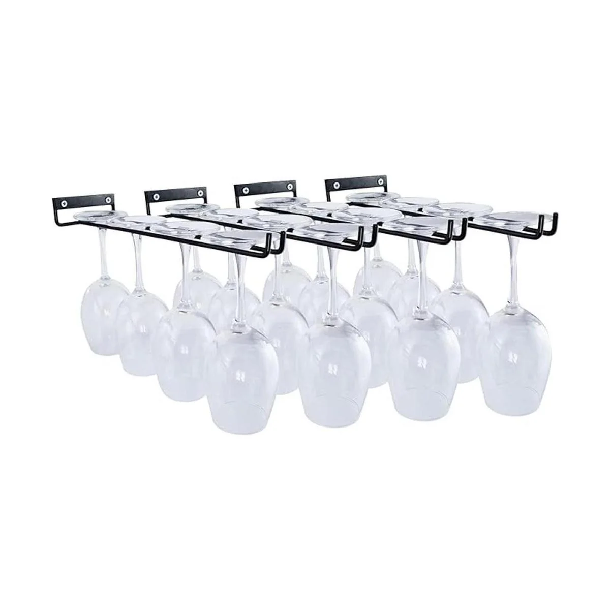 Estante de vidrio de vino, estante colgante de alambre, estante colgante de vidrio de vino, estante de la suspensión de la copa de vino, estante de Stemware, debajo del gabinete 4PCS