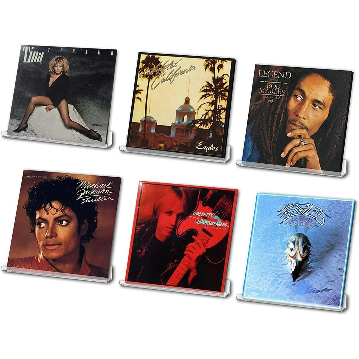 Estante de vinilo para discos Soporte de vinilo para montaje en pared Soporte de vinilo transparente Estante de almacenamiento de vinilo acrílico fácil de instalar para el hogar o el estudio Estante de discos para vinilo y libros paquete de 6