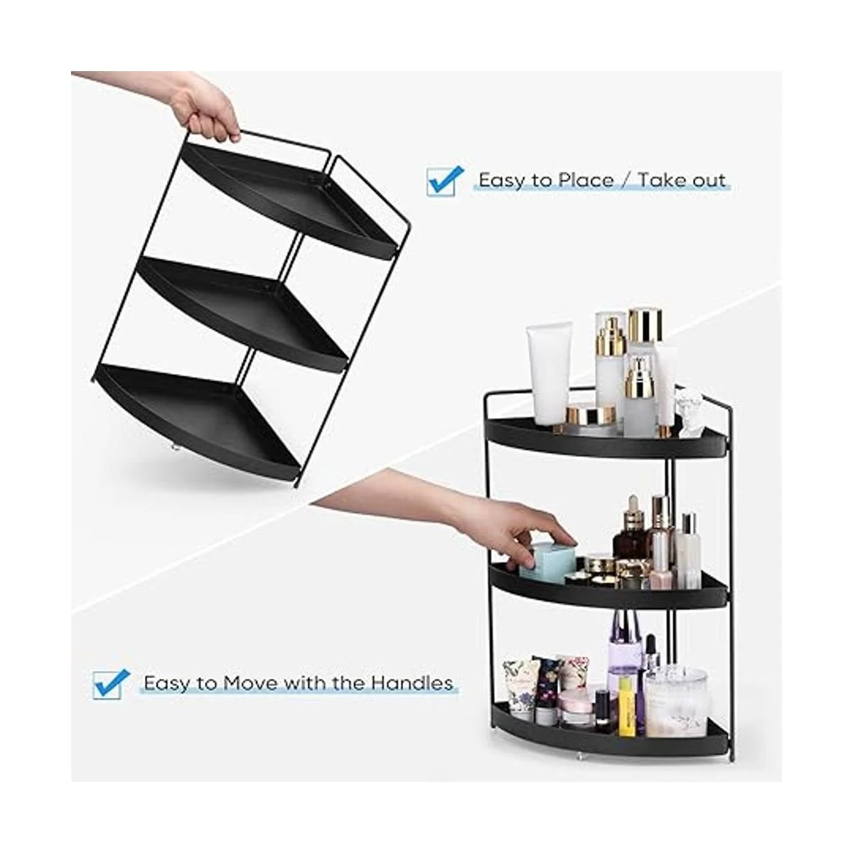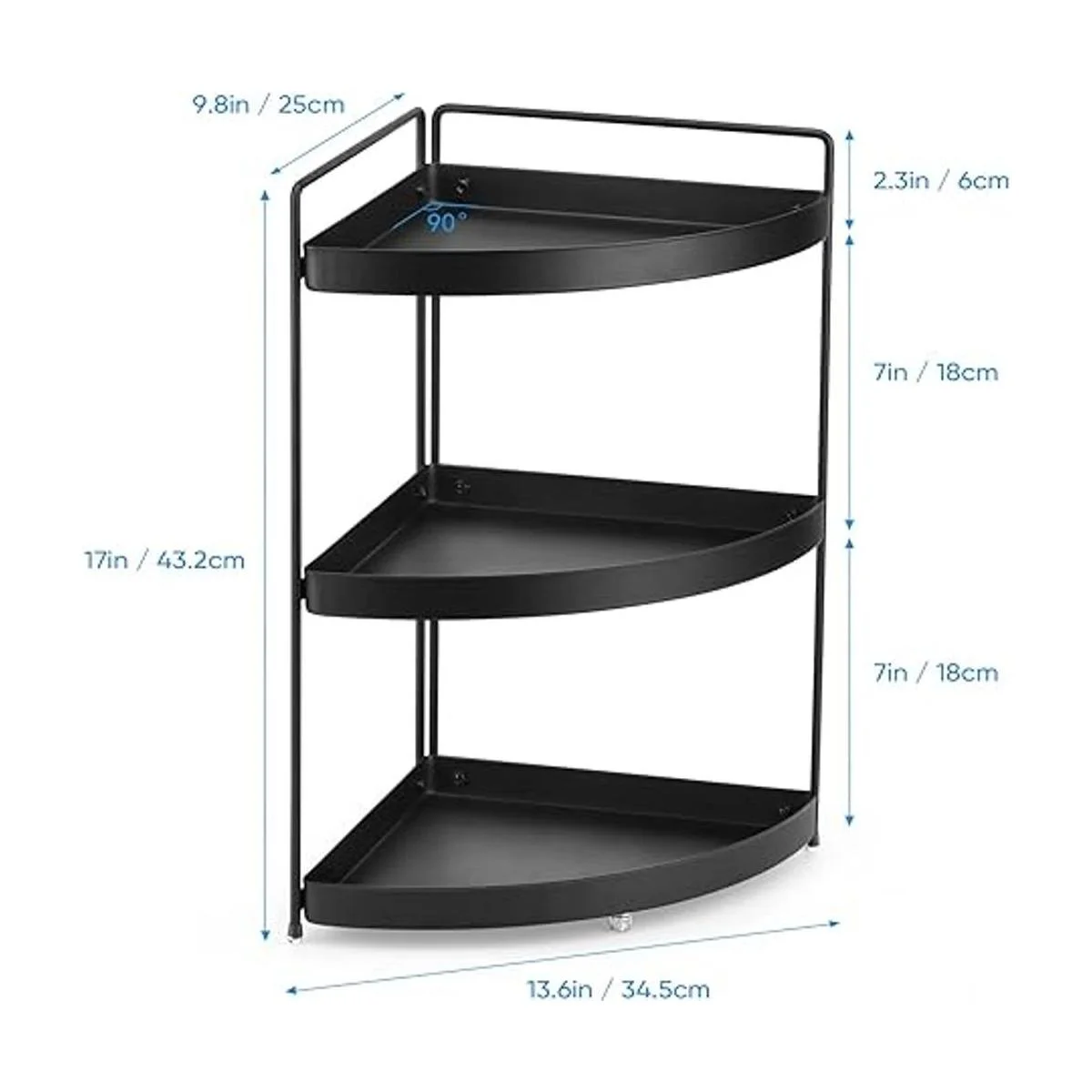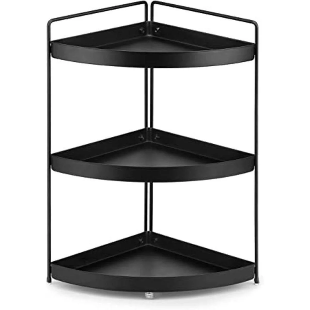 Estante esquinero de 3 niveles, organizador de especias de cocina, baño, bandejas de perfume para tocador, organización y almacenamiento, estantes de pie, soporte para ahorro de espacio, color negro