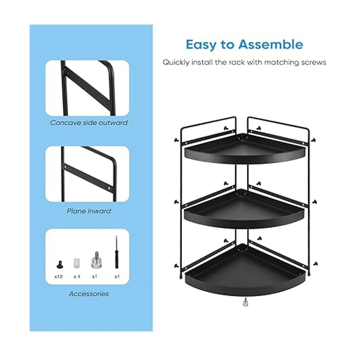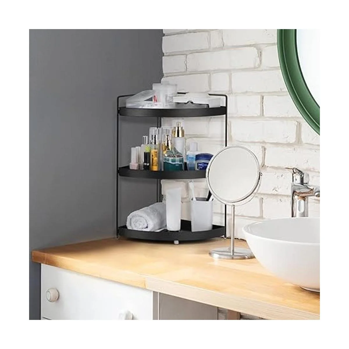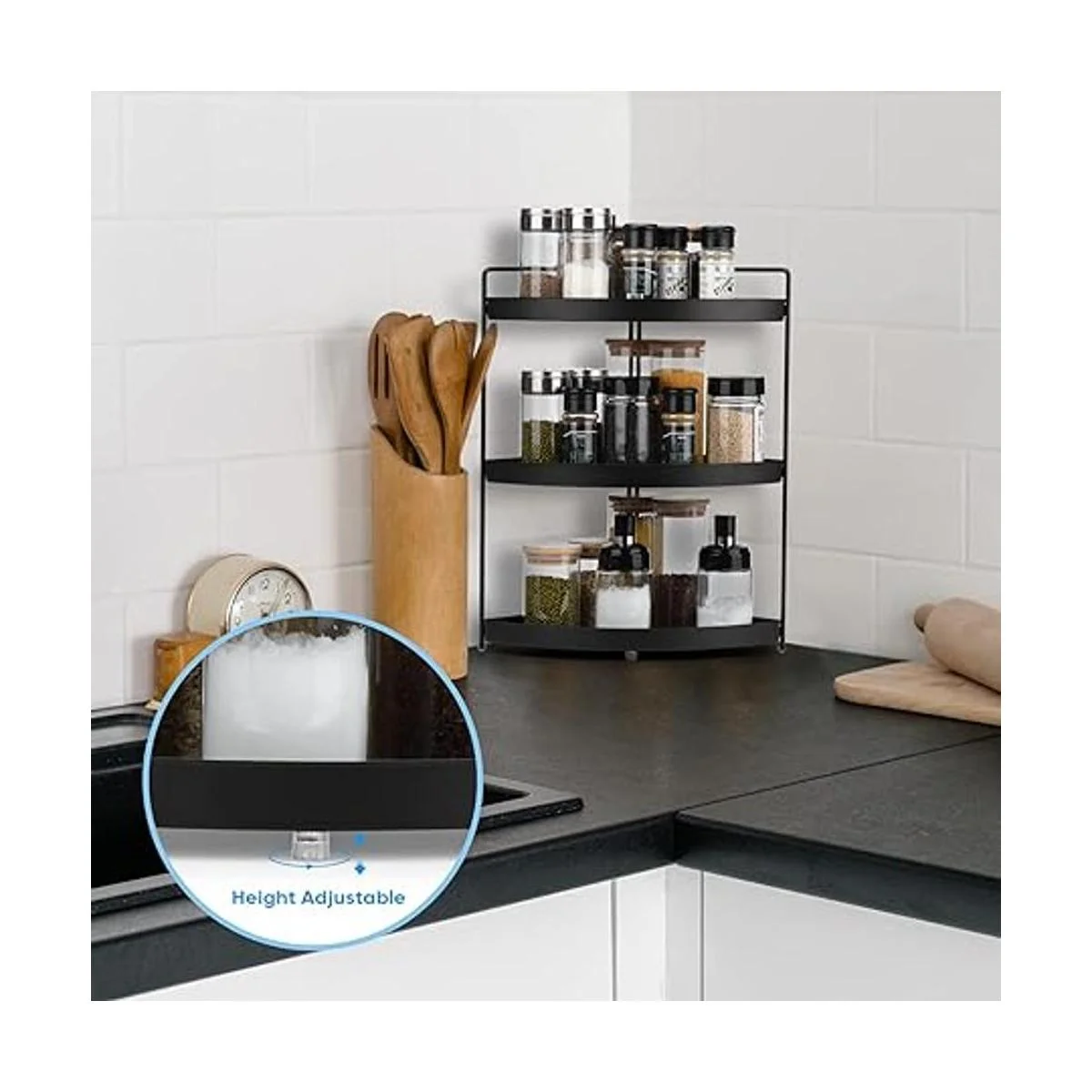 Estante esquinero de 3 niveles, organizador de especias de cocina, baño, bandejas de perfume para tocador, organización y almacenamiento, estantes de pie, soporte para ahorro de espacio, color negro