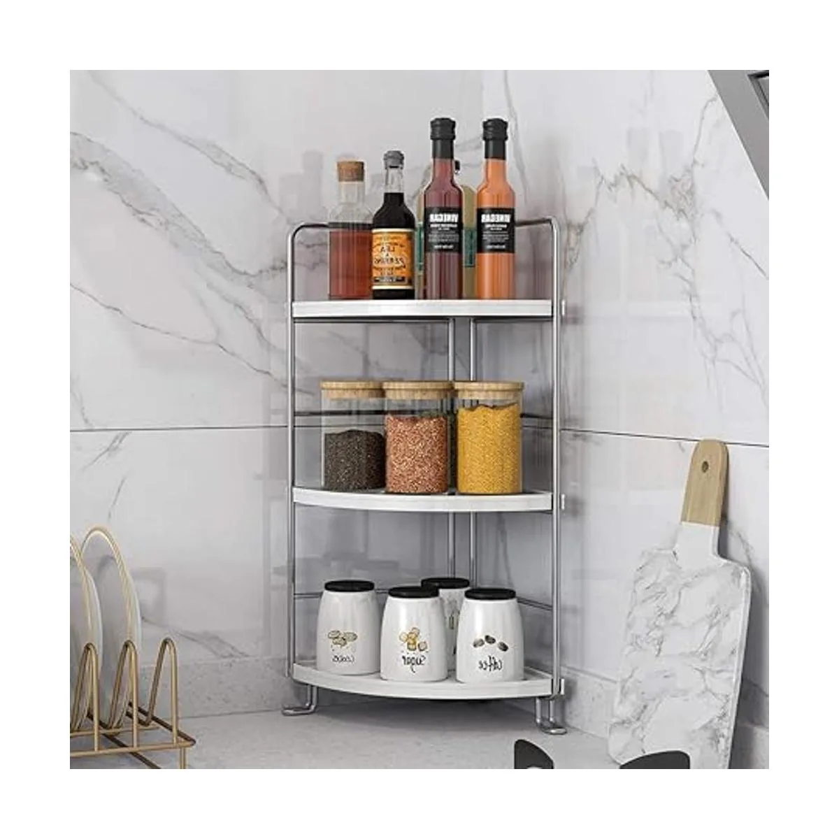 Estante esquinero de 3 niveles para especias de cocina