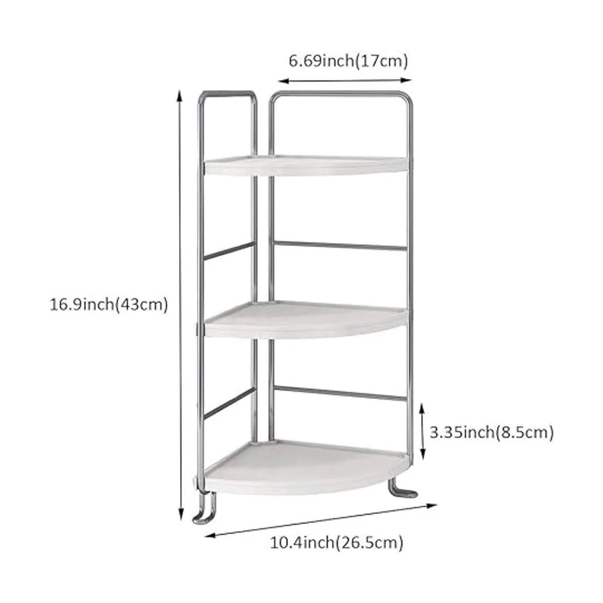 Estante esquinero ajustable de 3 niveles: los estantes son ajustables, 5 posiciones verticales para elegir, puedes ajustar la altura de tus estantes según tus necesidades