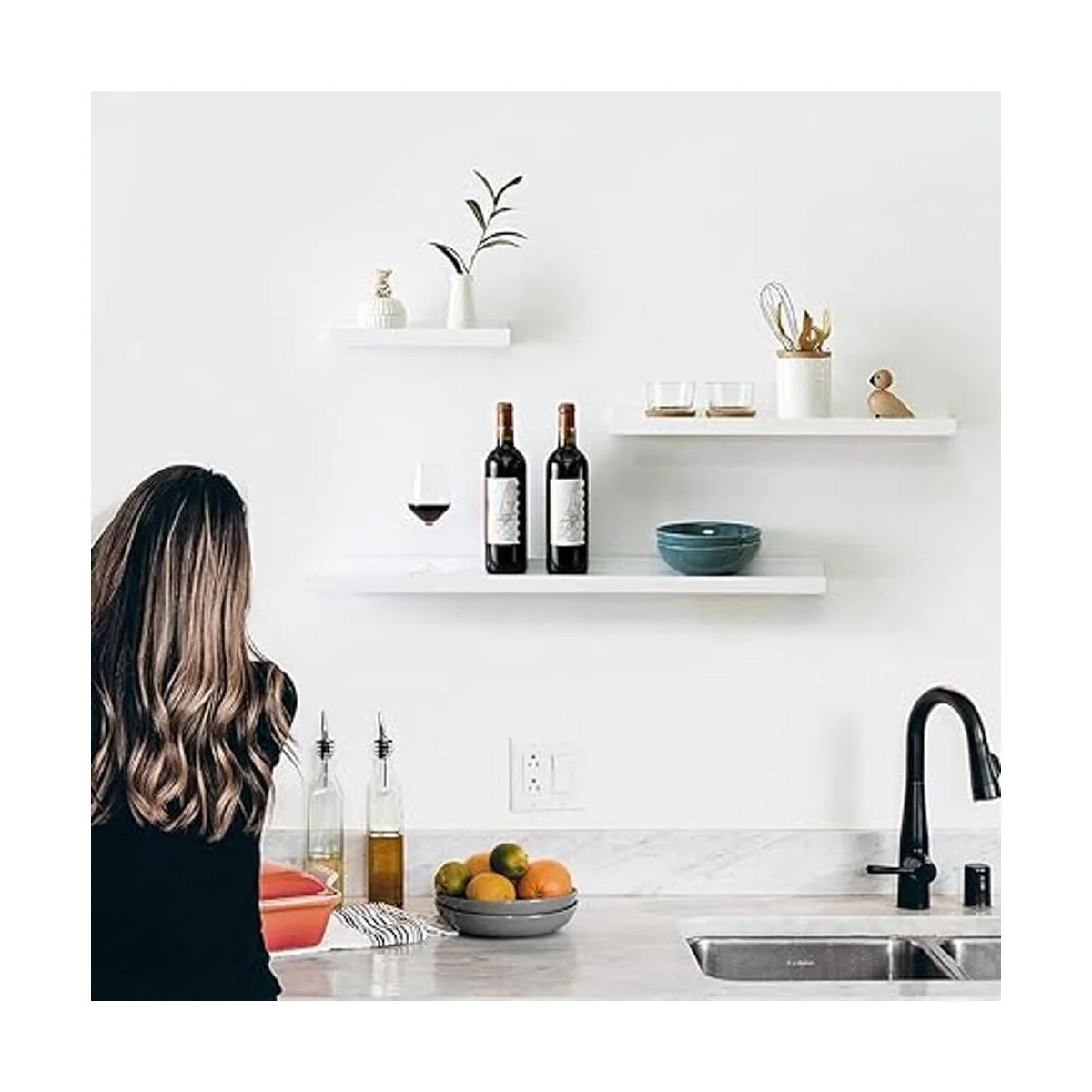 Fácil de montar: el paquete de estante de almacenamiento colgante montado en la pared incluye todos los accesorios necesarios e instalación detallada para que puedas instalar fácilmente los estantes en poco tiempo. Además, hay 3 tamaños diferentes: 36 x 5.8 x 1.6 pulgadas, 24 x 5.8 x 1.6 pulgadas, 12 x 5.8 x 1.6 pulgadas. Puedes elegir diferentes tamaños para decoración combinada.