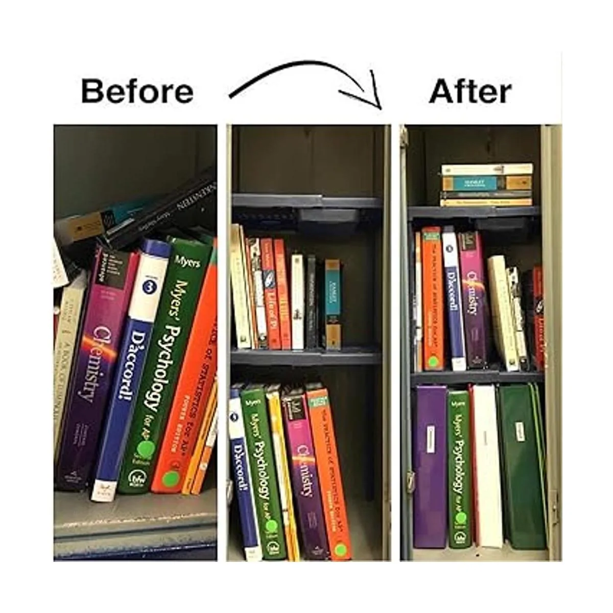 Ajuste ideal: ajustable para adaptarse a casi todos los taquillas de trabajo, escuela o gimnasio, organiza tu casillero de inmediato Ajusta el ancho de 8 a 12 1/2 pulgadas y la altura de 9 3/4 a 14 pulgadas. La profundidad del estante es de 9 1/2 pulgadas.