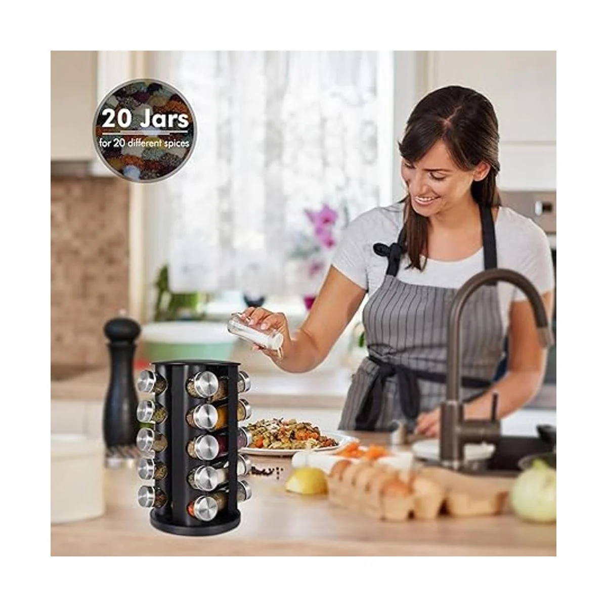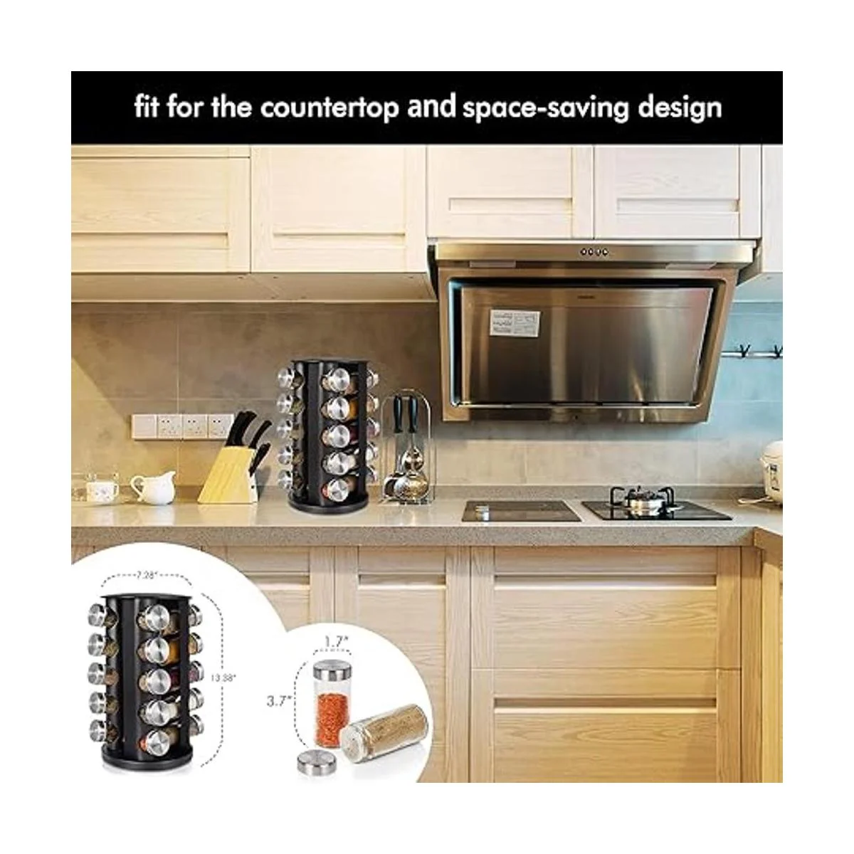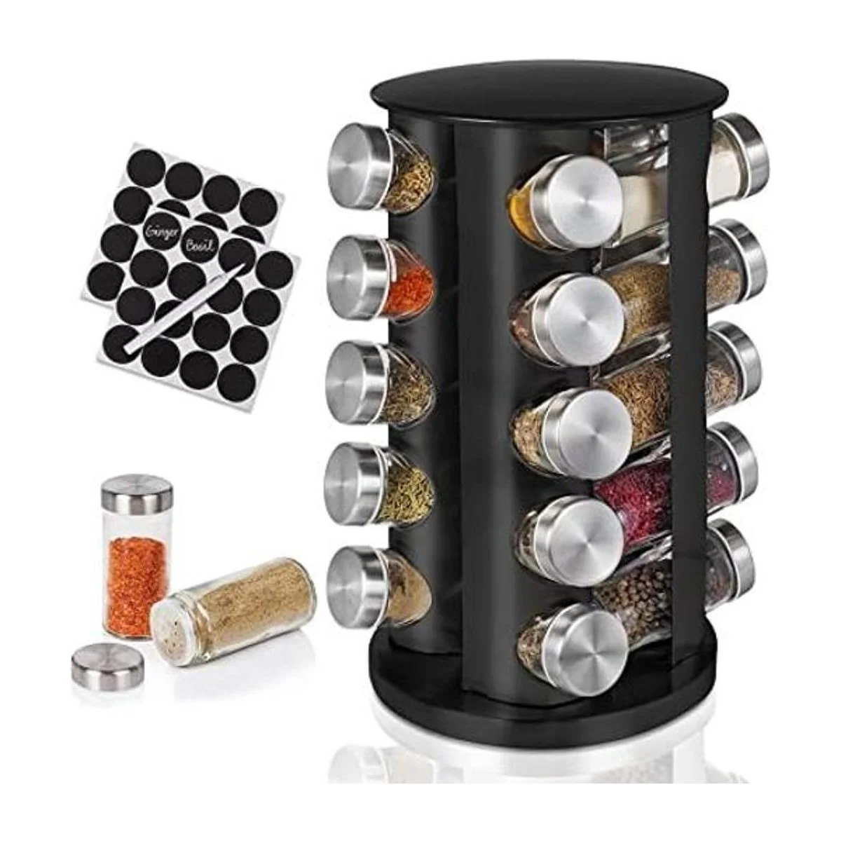 Estante para especias, organizador de especias para encimera, estante giratorio para especias con tarros, estante giratorio para especias, estante giratorio para especias para cocina negro