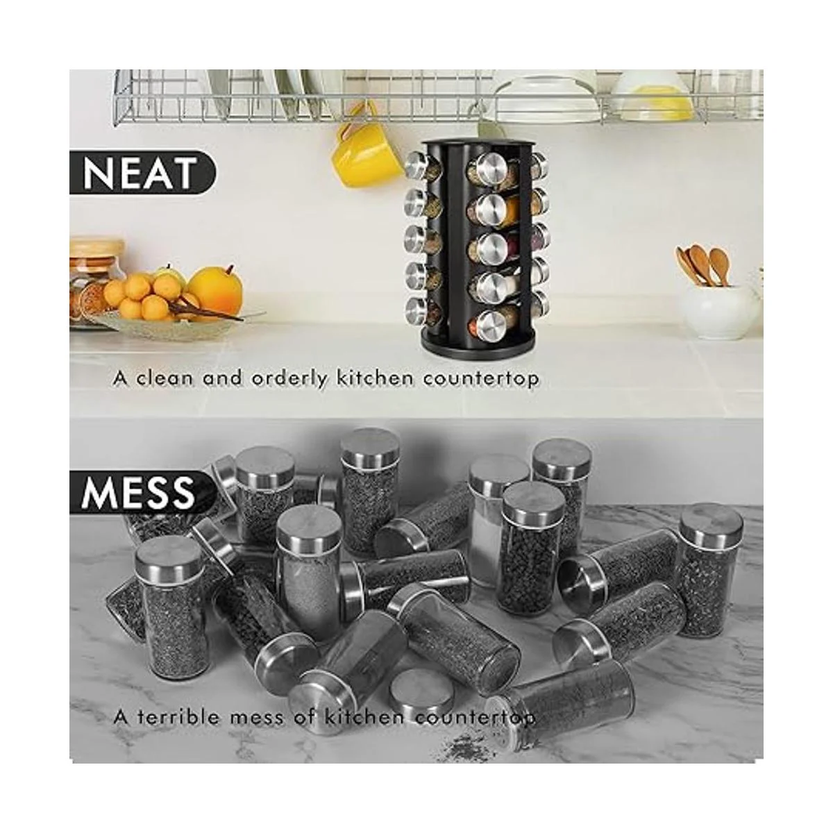 Mantén tu cocina limpia y ordenada: una encimera de cocina limpia y ordenada es realmente importante. El especiero de acero inoxidable especias no incluidas mantiene tus condimentos y hierbas en orden. Con la ayuda del organizador de especias, puedes ahorrar más espacio para tu cocina.