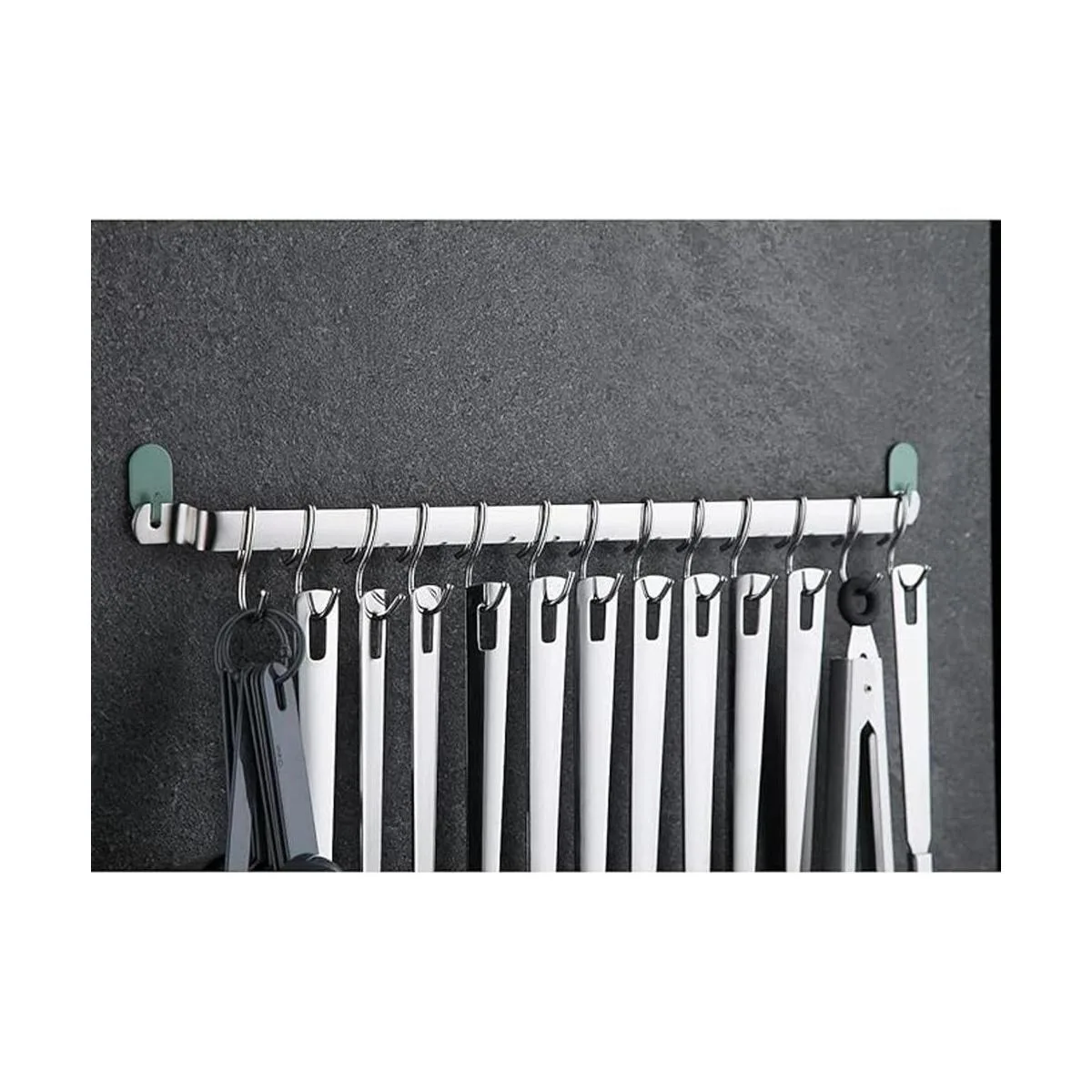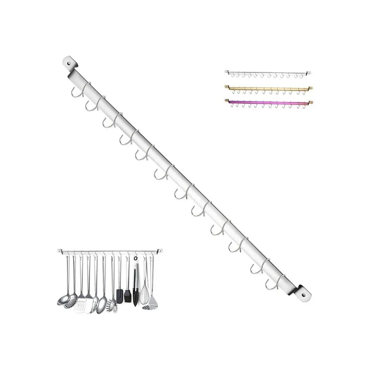 Kyraton Estante para utensilios de cocina, organizador para colgar cuchillos, soporte para espátulas, soporte para ollas colgantes, riel de cocina gourmet montado en la pared con 14 ganchos
