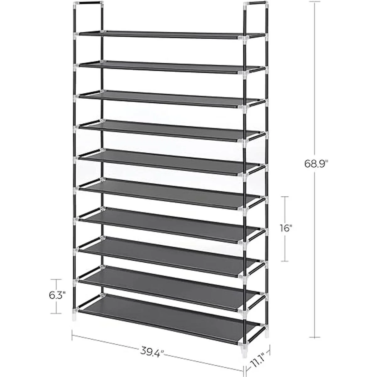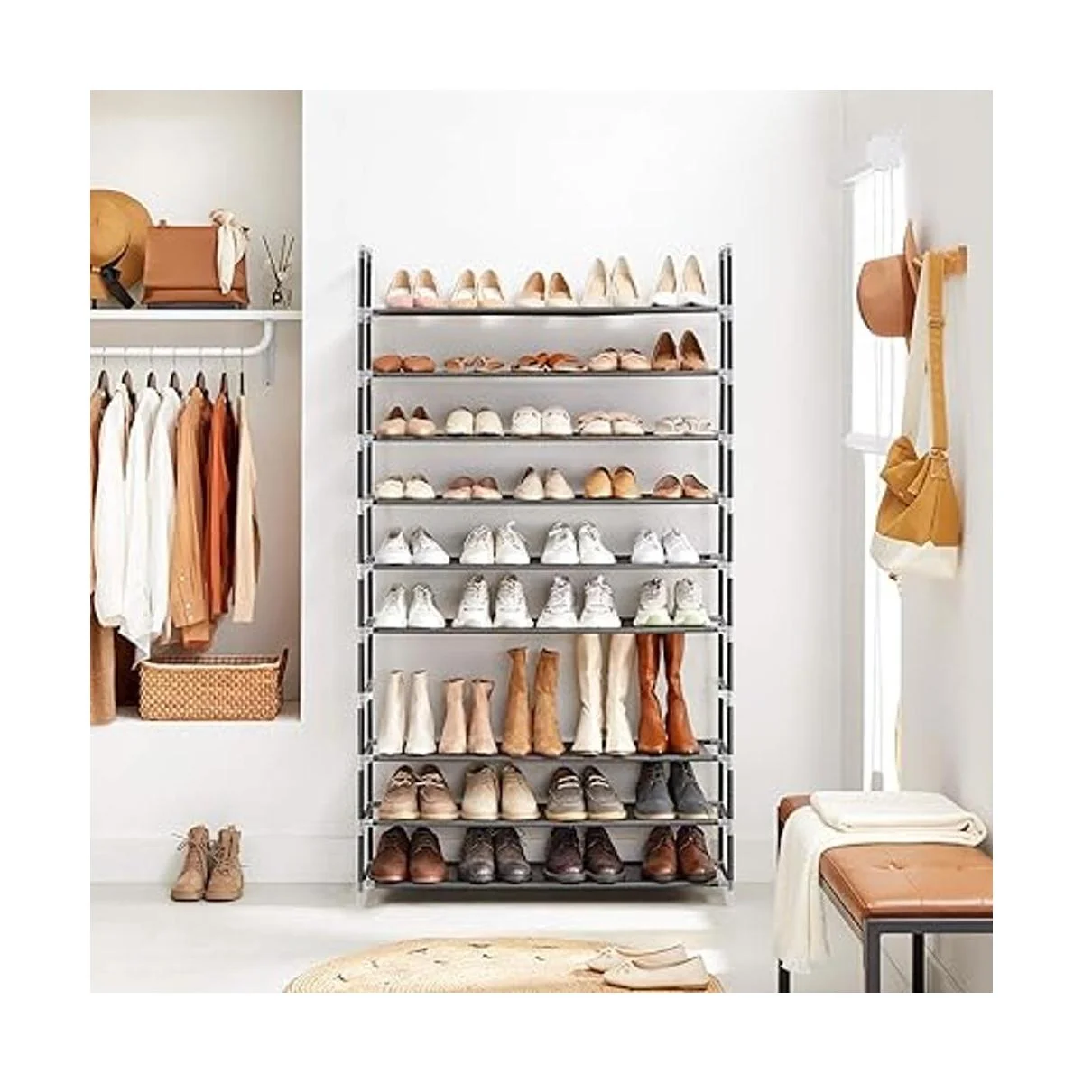 El estante para zapatos duradero de 10 niveles puede almacenar hasta 50 pares de zapatos y mantiene los zapatos organizados.