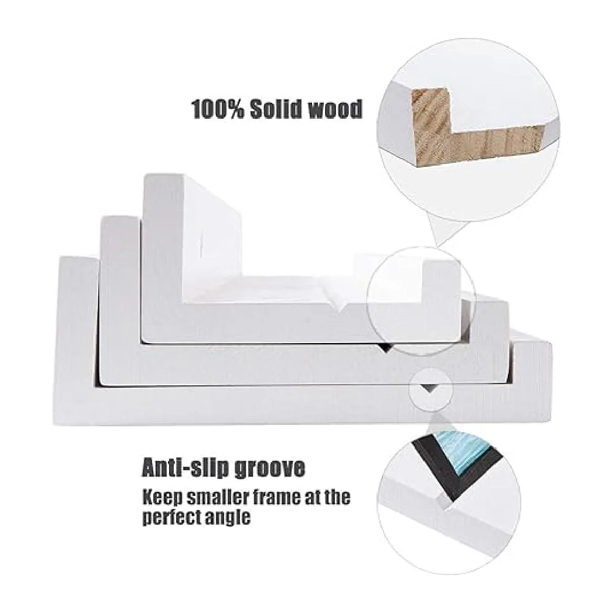Estantes flotantes montados en la pared. Tamaño: el paquete de 3 estantes de madera para pared contiene 3 dimensiones diferentes, estantes grandes de 24 x 5.7 x 1.9 pulgadas, estantes medianos de 24 x 4.7 x 1.9 pulgadas, estantes pequeños de 24 x 3.7 x 1.9 pulgadas. Puedes crear tu arreglo de montaje favorito de varias maneras
