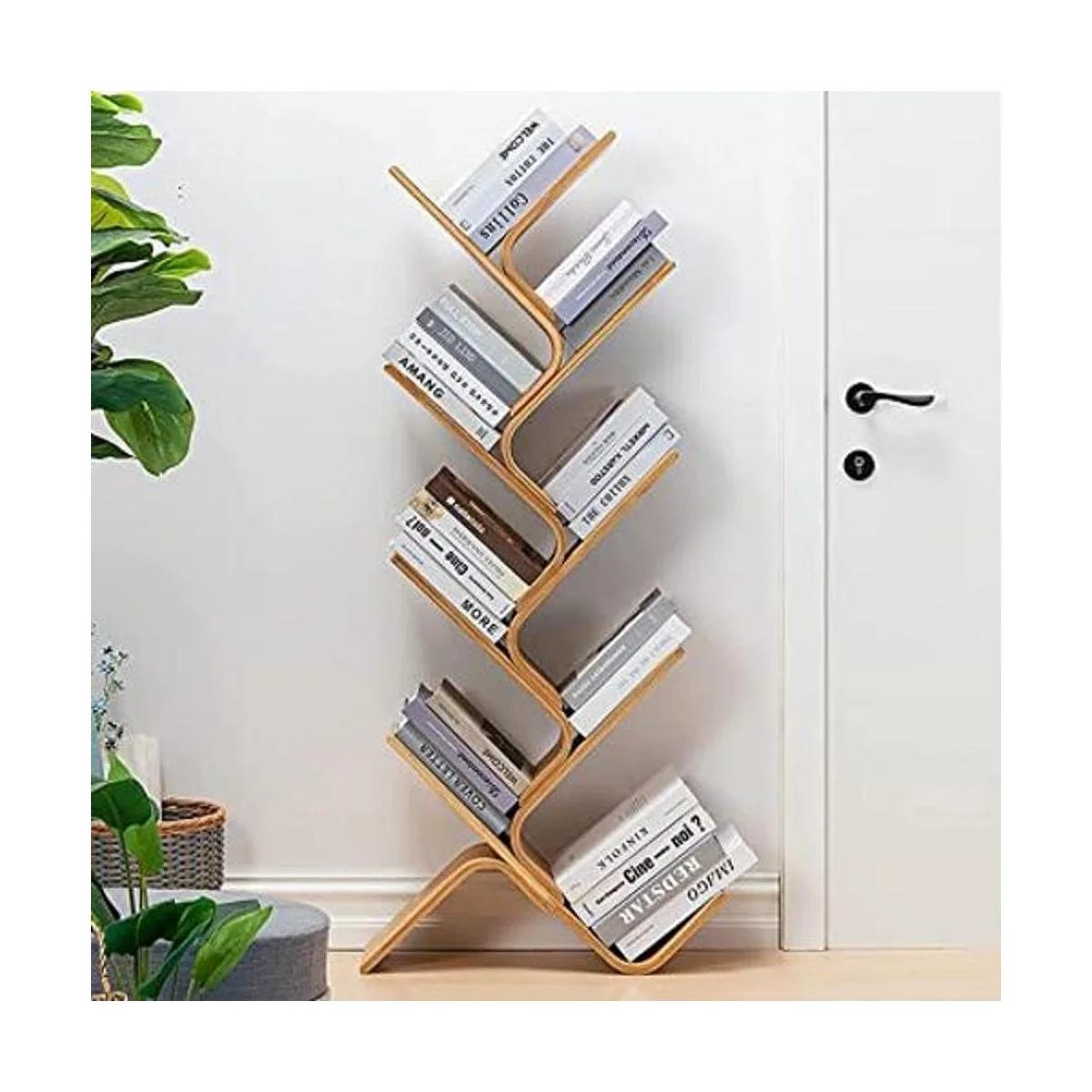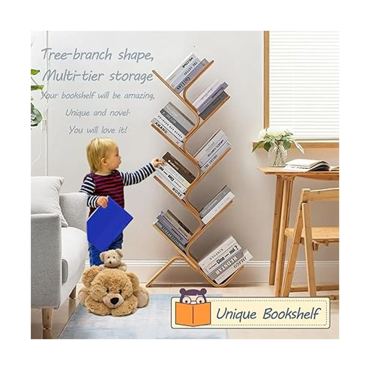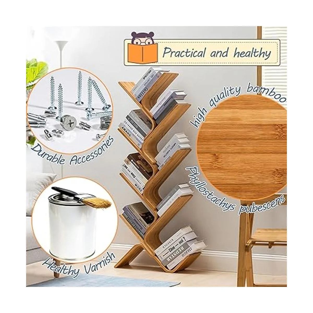 Estantería de bambú para árbol, estantería de madera de 8 niveles, estantes organizadores de almacenamiento para libros, álbumesarchivos, estante de almacenamiento para sala de estar, dormitorio, troncos de 55 x 23 x 5 pulgadas