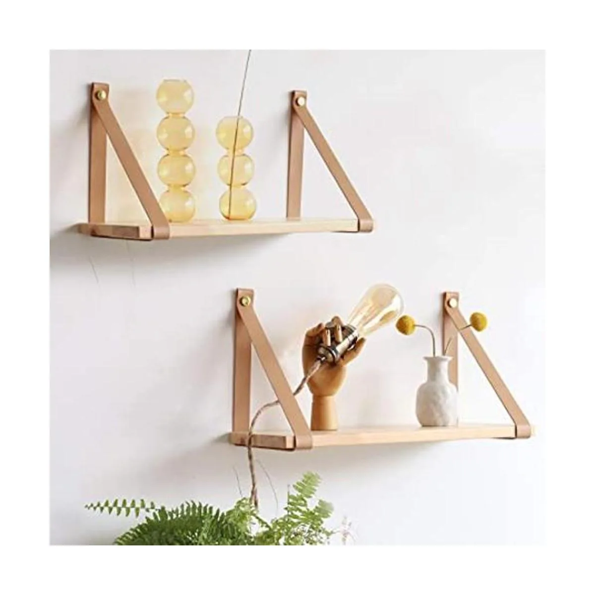 Capacidad de carga: la correa de piel sintética puede soportar hasta 19.8 lbs, teniendo en cuenta que el yeso tiene un rodamiento de carga pobre, no recomendamos instalar estantes. Además, la capacidad de carga se determina por la pared en la que se fija el estante