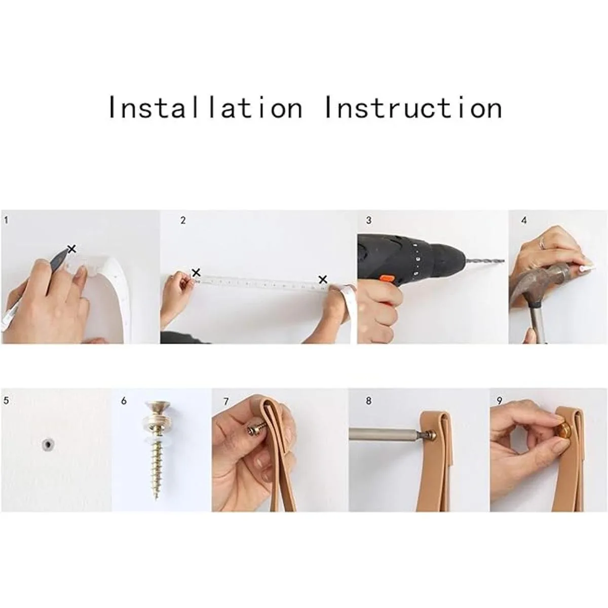 Fácil de instalar: el estante de correa de cuero con todos los accesorios necesarios e instrucciones detalladas incluidas para una fácil instalación
