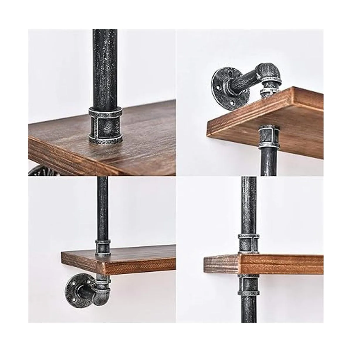 Alta calidad, fuerte y resistente: piezas controladas de calidad y probadas a presión. Hecho de soportes de tubo de 1/2 pulgada y tablón grueso de 4/5 pulgadas. Cada pieza es el tamaño estándar certificado y peso utilizado en aplicaciones de tuberías industriales. Materiales de alta calidad que te proporcionan un estante flotante de pared realmente sólido y duradero que durará años.