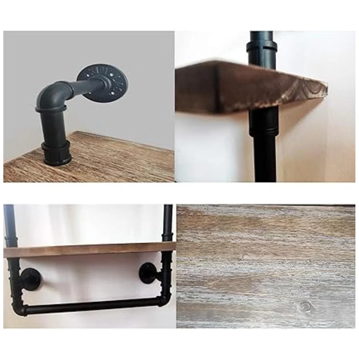 Estilo industrial retro: los tubos de hierro negro con aspecto rústico de madera recuperada, añaden un toque de granja vintage a tu hogar. Esto es ideal para añadir estantes adicionales de baño.