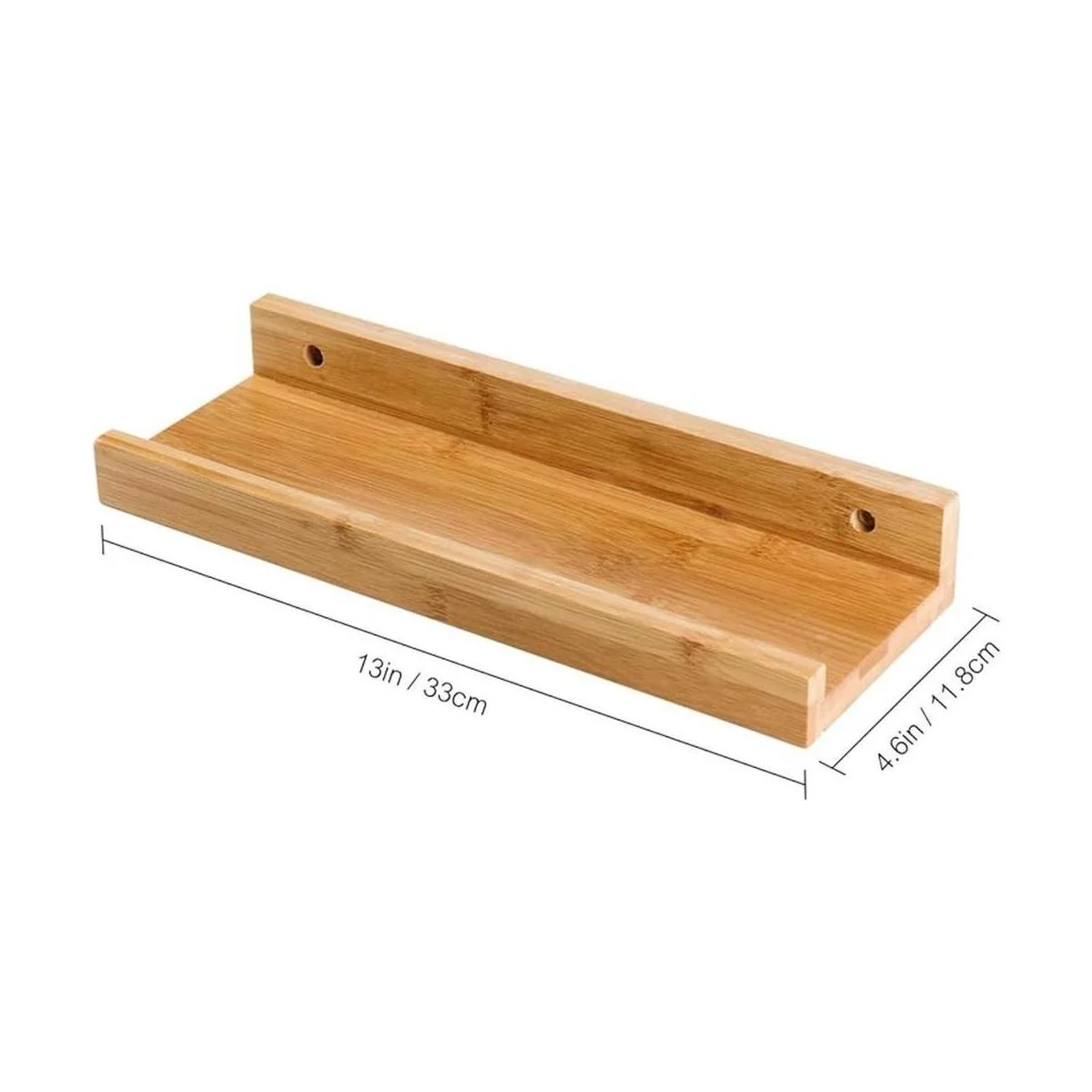 Estantes flotantes de bambú natural de YOYAI montado en la pared de madera rústica estantes de pared organizador de almacenamiento de pared decoración del hogar, sala de estar, cocina dormitorio natural, 13.3 in