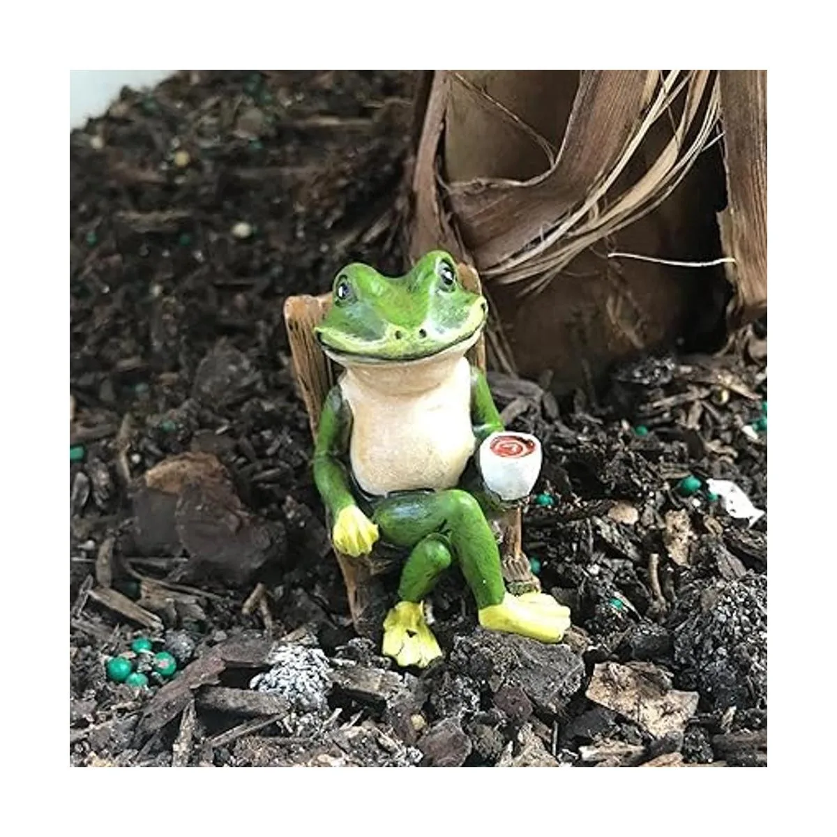 Tamaño miniatura: mide 2.0 in de alto x 2.0 in de ancho, lo que hace que la estatua de rana sea adorable para plantas en maceta, terrarios y jardines de hadas.