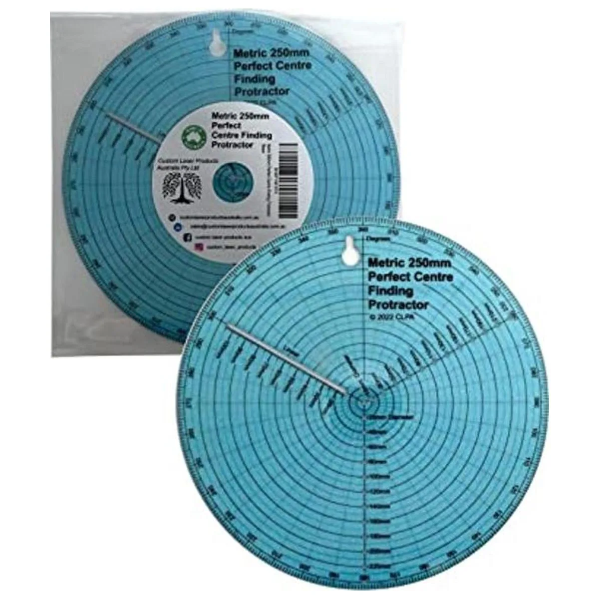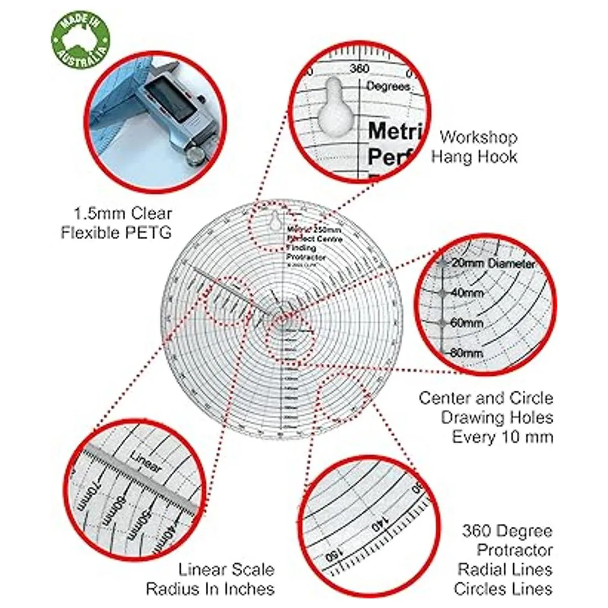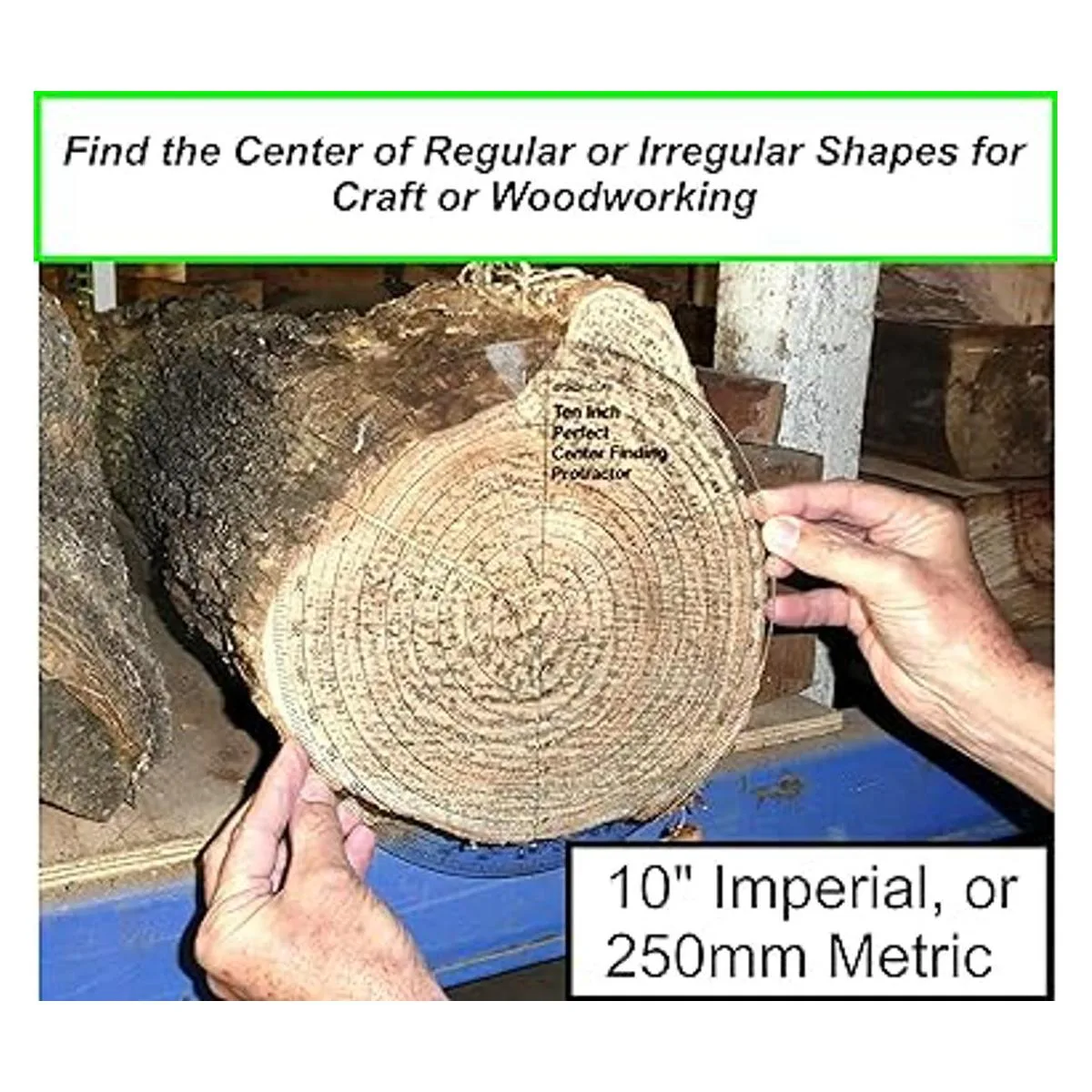 Este buscador central y transportador de 9.843 in claramente impreso para carpintería y manualidades, se puede utilizar para encontrar el centro de tu material, dibujar un círculo en cualquier superficie y medir el diámetro, radio o ángulos.