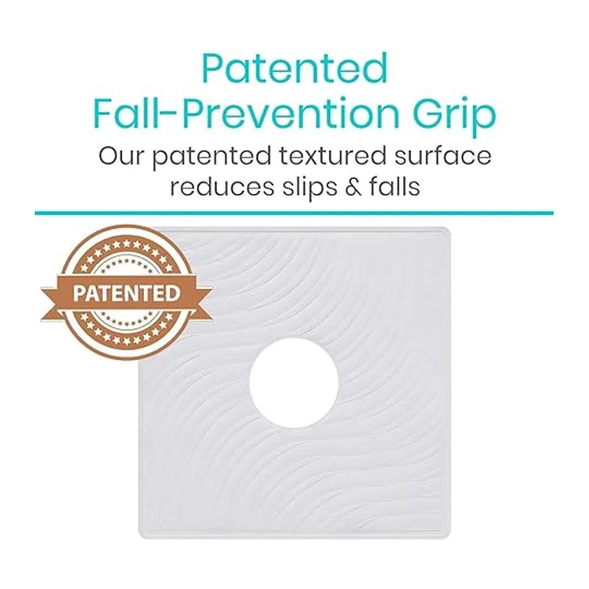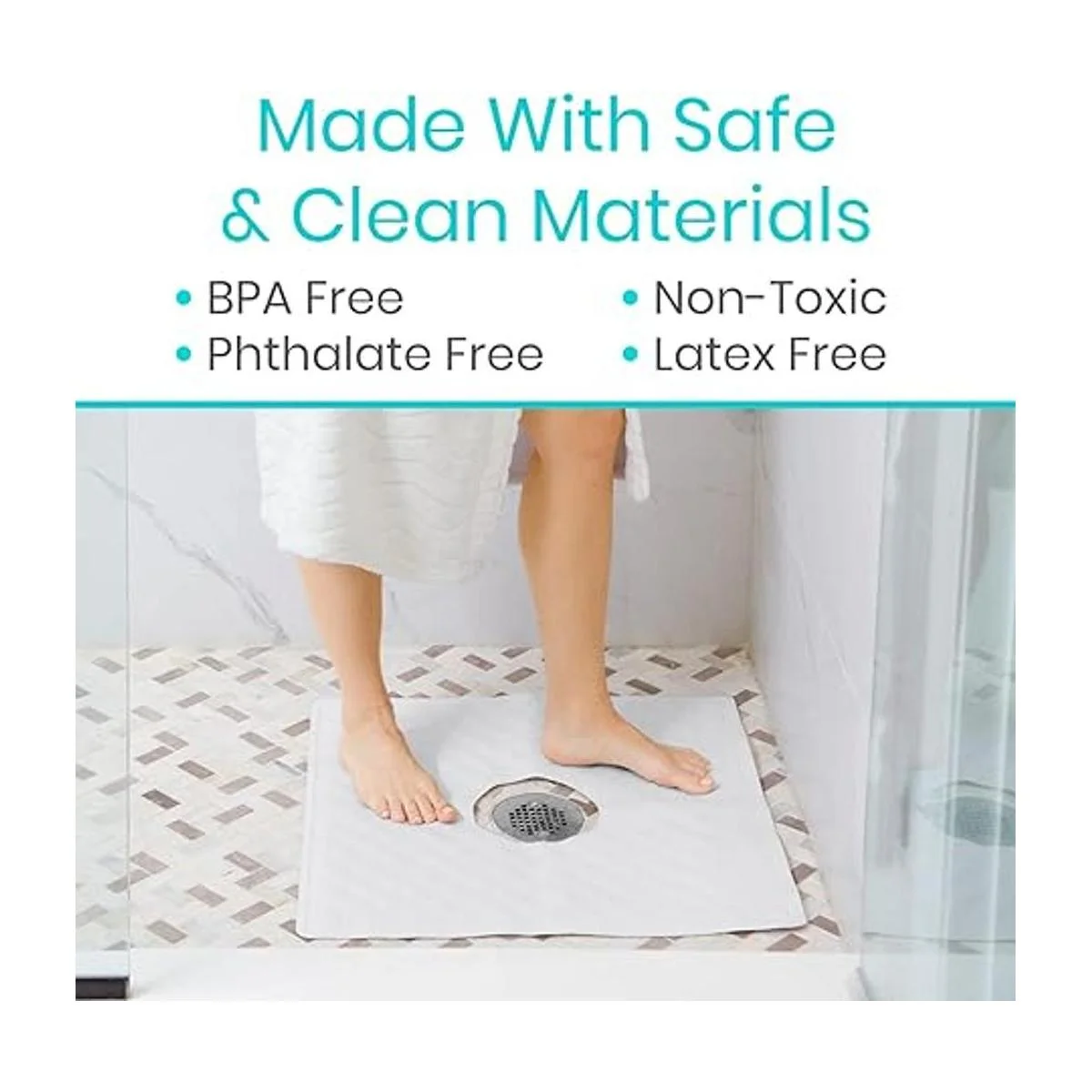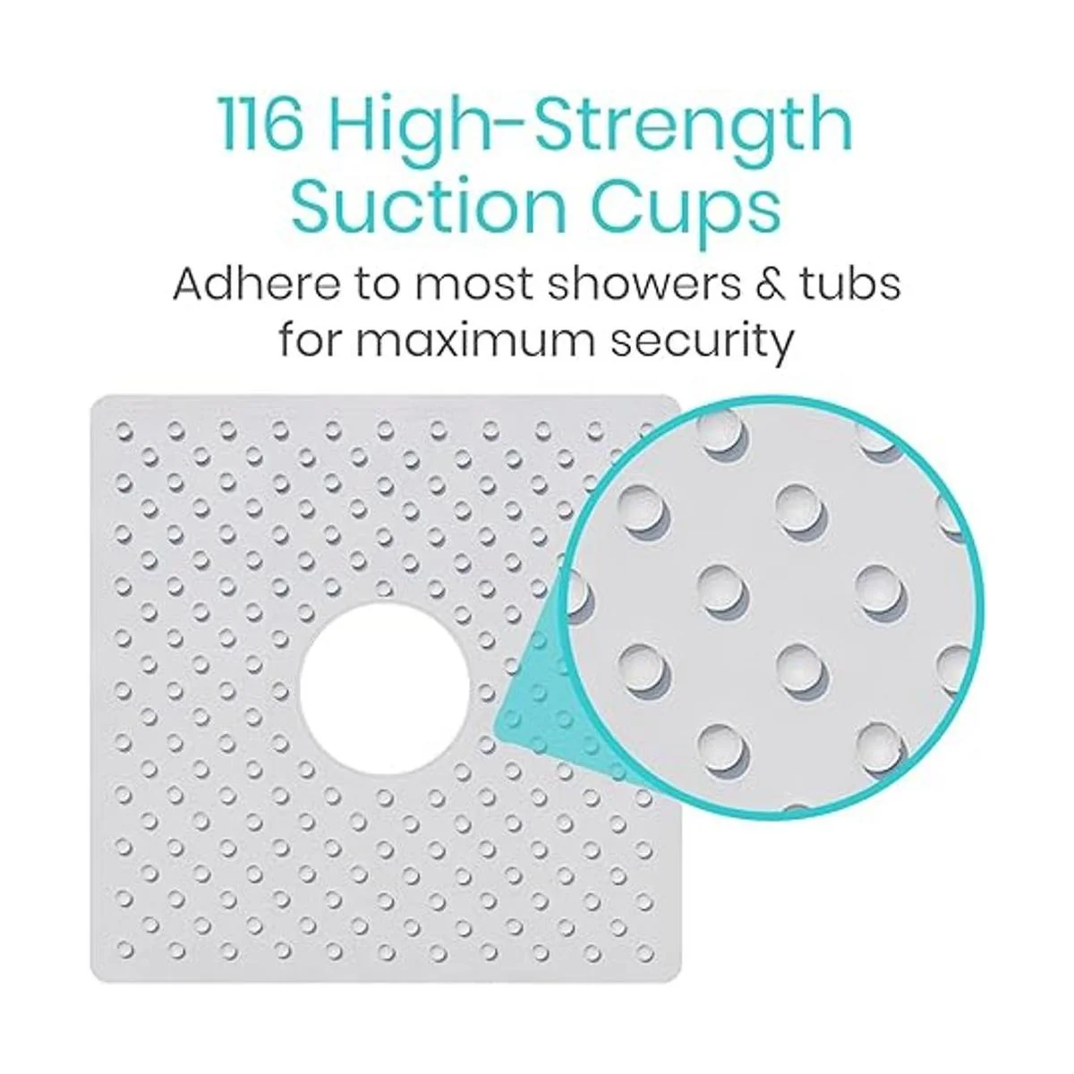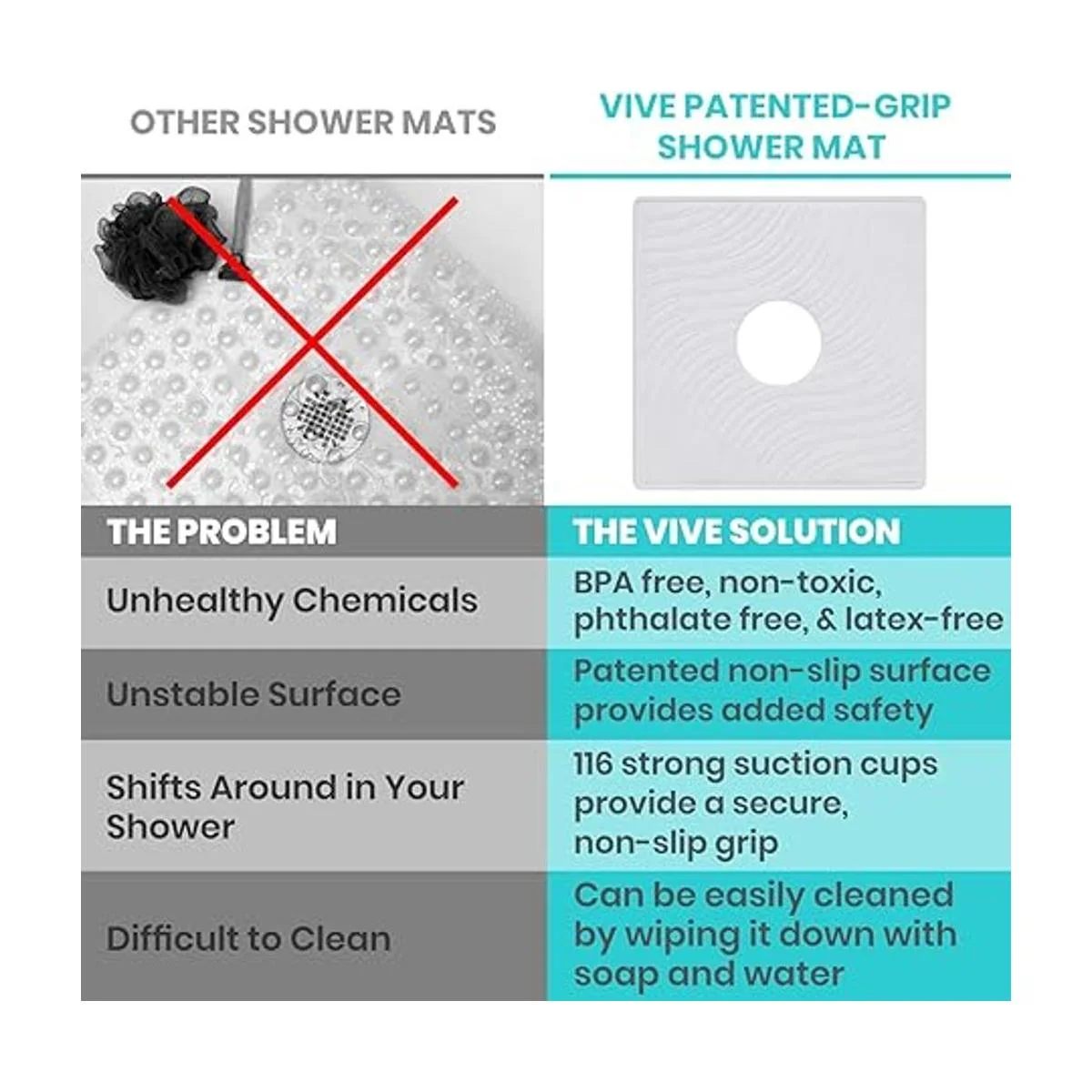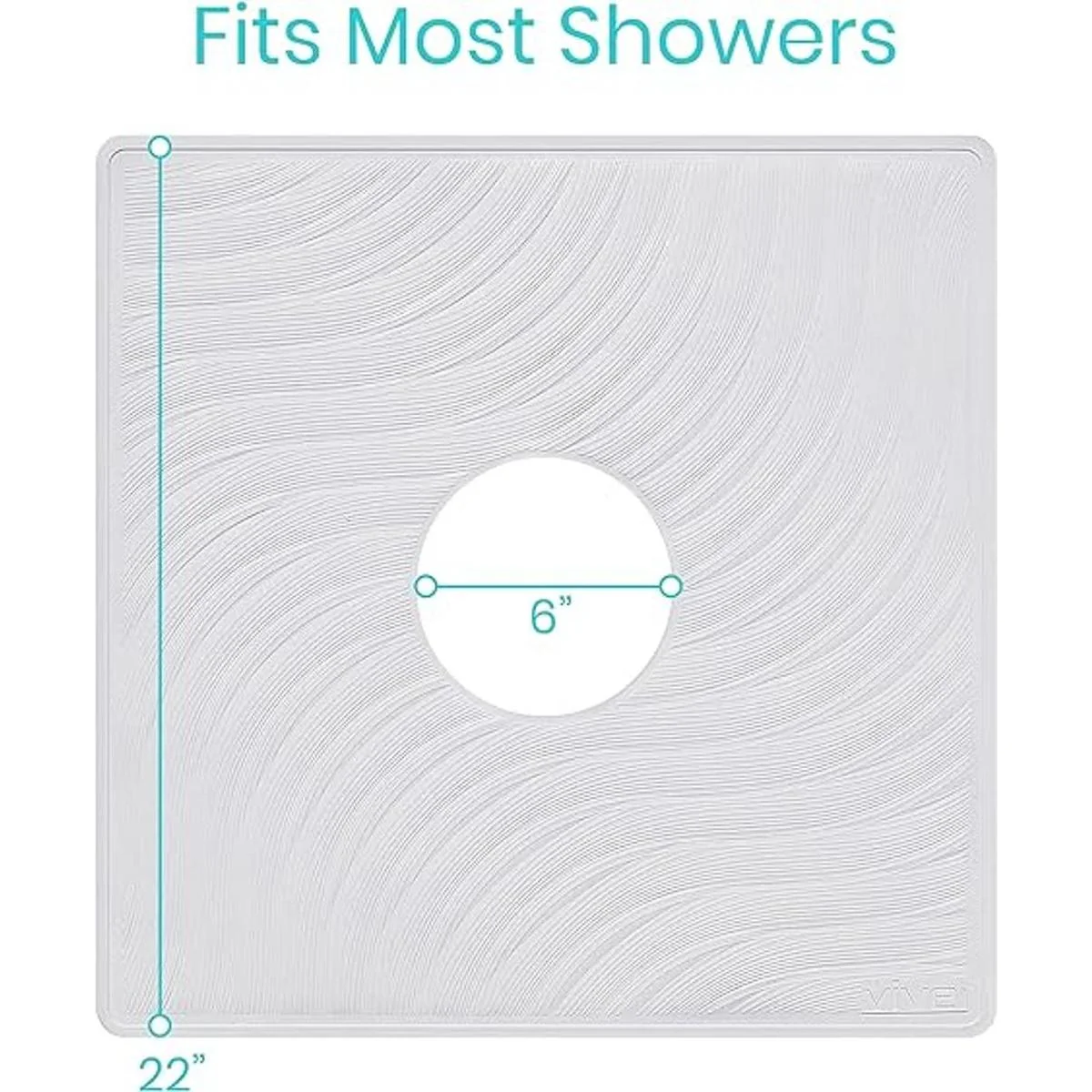PATENTED NONSLIPN SURFACE: Our Shower Mat by Vive is 22 by 22. Its textured surfacea patented designwill provide you with exceptional traction and stability. It will cover a very large part of your shower floor. It will provide you with safe, comfortable footingfor protection against hazardous falls. Its perfect for seniors, children, and those with balance concerns.