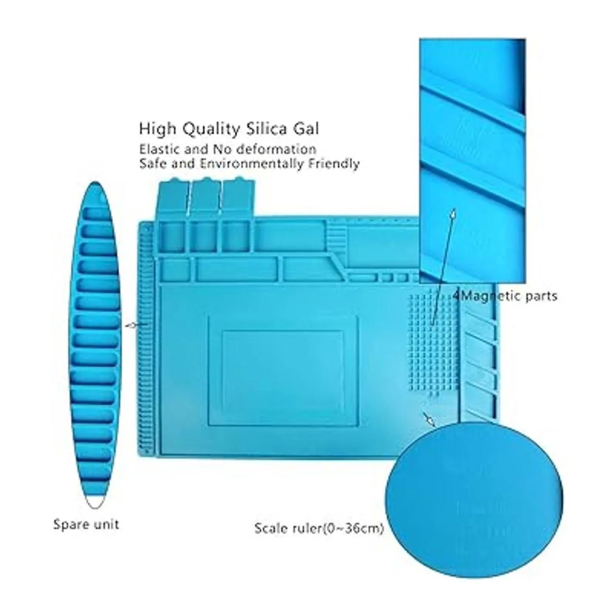 Lo que obtendrás: alfombrilla de reparación de silicona magnética S160 de 17.7 x 11.8 in, proporciona un espacio más grande para satisfacer tus necesidades de reparación de muchos proyectos.