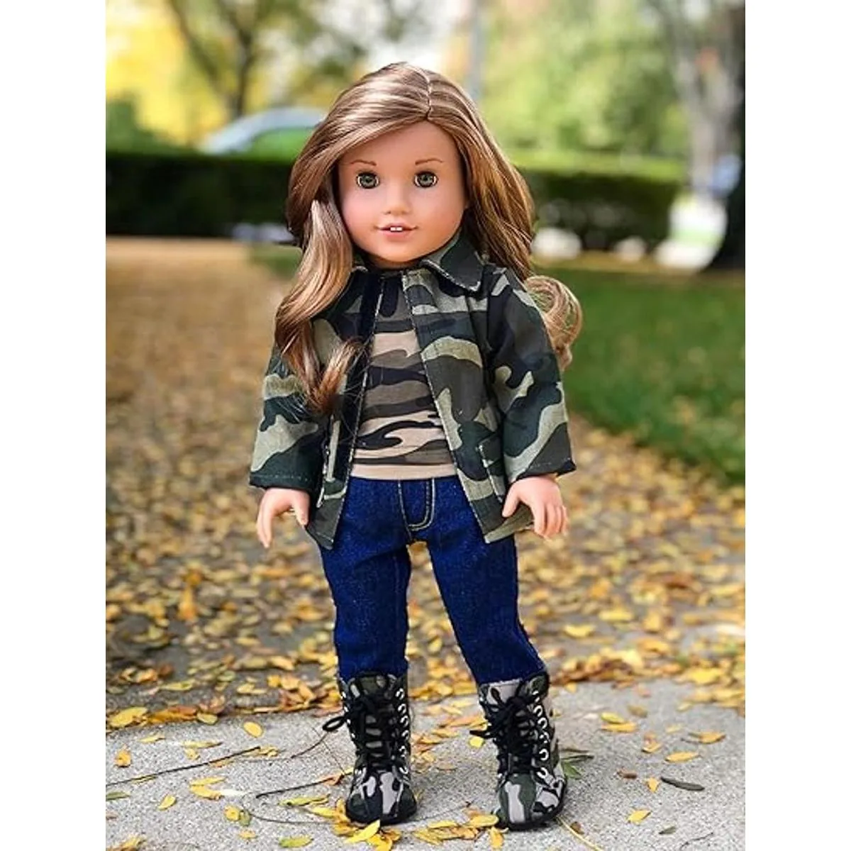 Estilo militar 4 pieza Outfit Camuflaje chamarra, playera, elástico jeans y camuflaje Botas muñecas no incluido